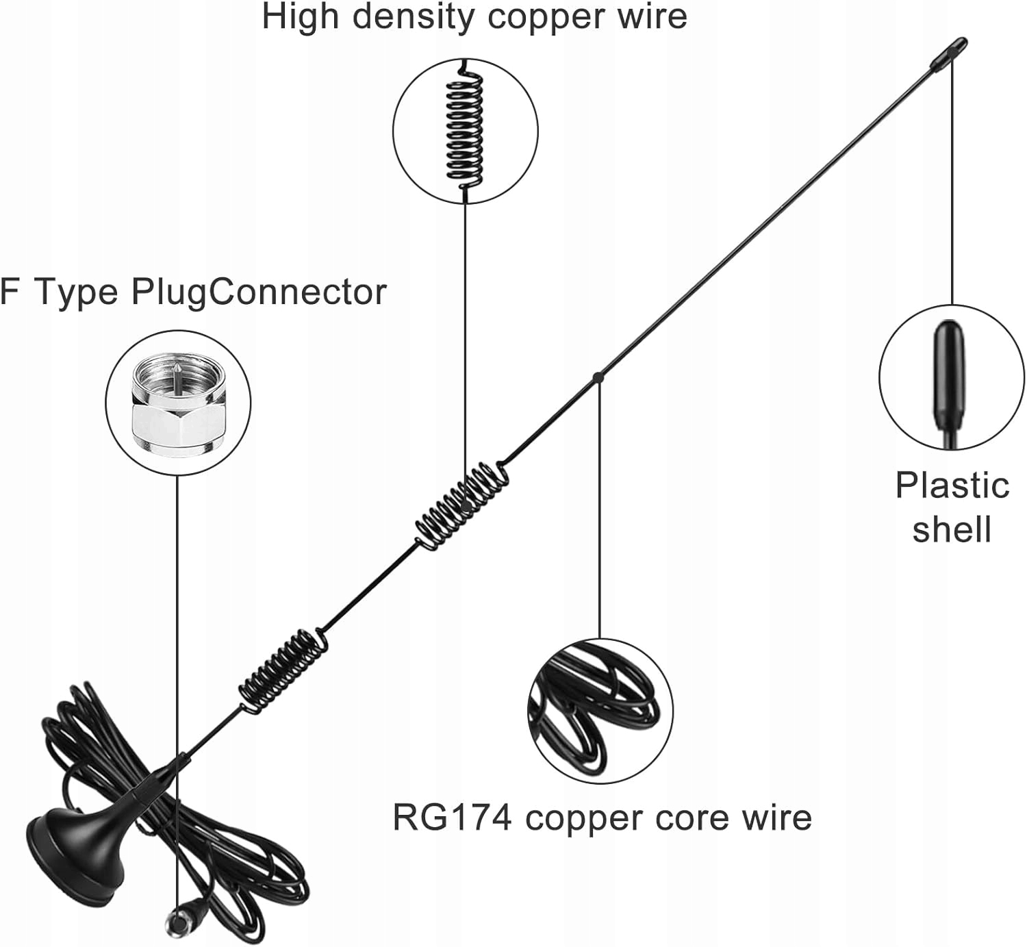 - Чудова продуктивність: антена забезпечує високоякісний прийом радіосигналу, ви можете насолоджуватися улюбленими радіостанціями з чистим і високоякісним звуком, де б ви не були, без шуму та перешкод, щоб забезпечити ідеальне прослуховування
