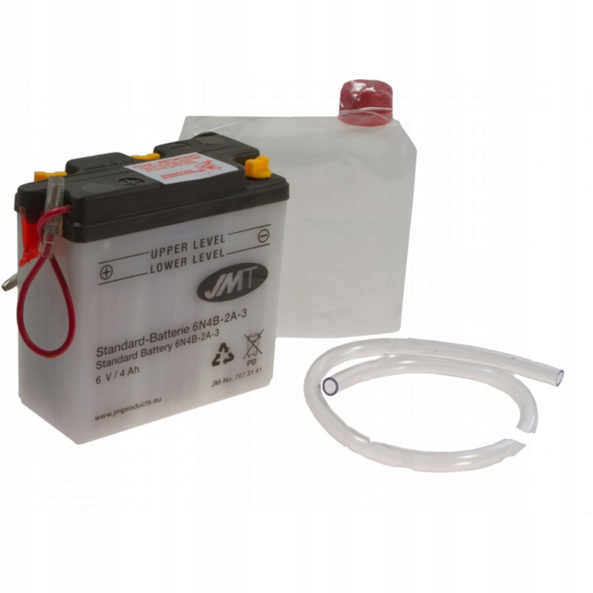 За останні кілька років акумулятори JMT повністю змінили обличчя. Завдяки використанню повністю автоматизованої виробничої лінії, в даний час виробляються акумулятори JMT, представляють найвищий глобальний технологічний рівень. Відносно низька ціна означає, що акумулятори JMT є найкращим рішенням на ринку мотоциклістів. Вісім правил для належної роботи акумулятора: 1. Вилийте новий акумулятор електролітом 2. Зберігайте акумулятор чистим 3. Увага! В середньому кожен другий акумулятор, який після зимового періоду не підходить для подальшої роботи, пошкоджений через неправильне зберігання. Використовуйте аерометр (номер каталогу 720 0666) для перевірки щільності електроліту в акумуляторі. Коли щільність становить 1,20 кг/л або менше - акумулятор вимагає зарядки. Рівень заряду можна перевірити альтернативно за допомогою метра напруги. Якщо це 6,1 В (6 В акумулятор) або 12,2 В (12 В акумулятор), акумулятор повинен бути наповнений рівним або менше 1/10 ємності акумулятора. Приклад: акумулятор 8AH повинен бути заряджений значенням 0,8 a.