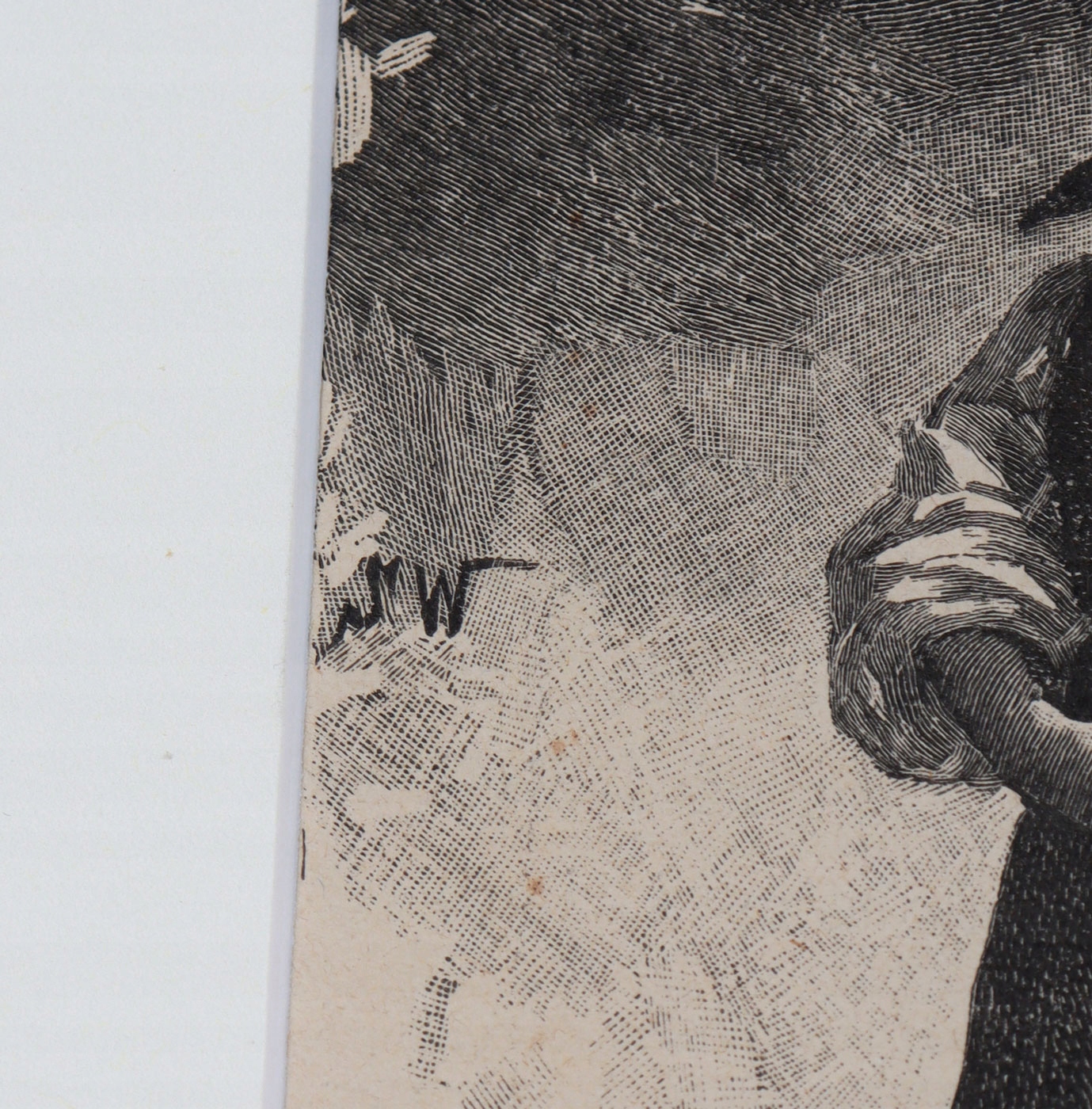 Техніка: ксилография з ребрами / папір. Робота підписана на блоці зліва від композиції.