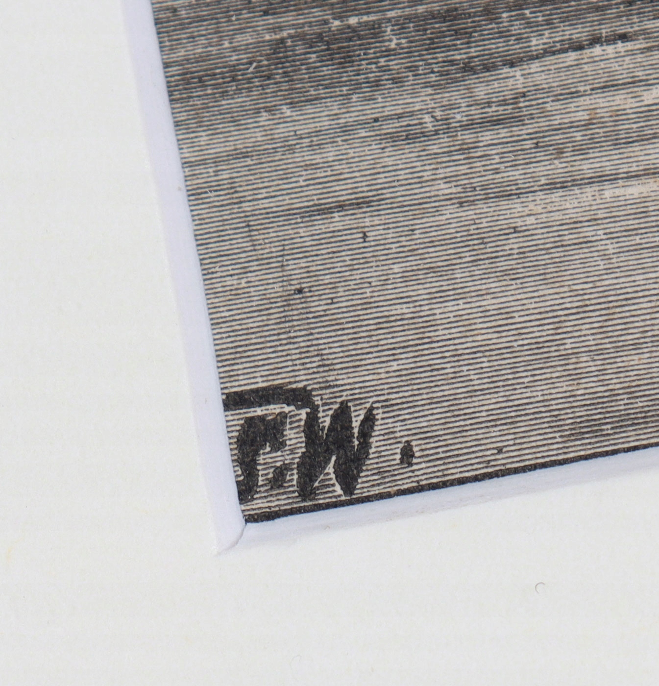 Техніка: ксилография з ребрами / папір. Робота підписана монограмою на бруску в нижньому лівому куті композиції.