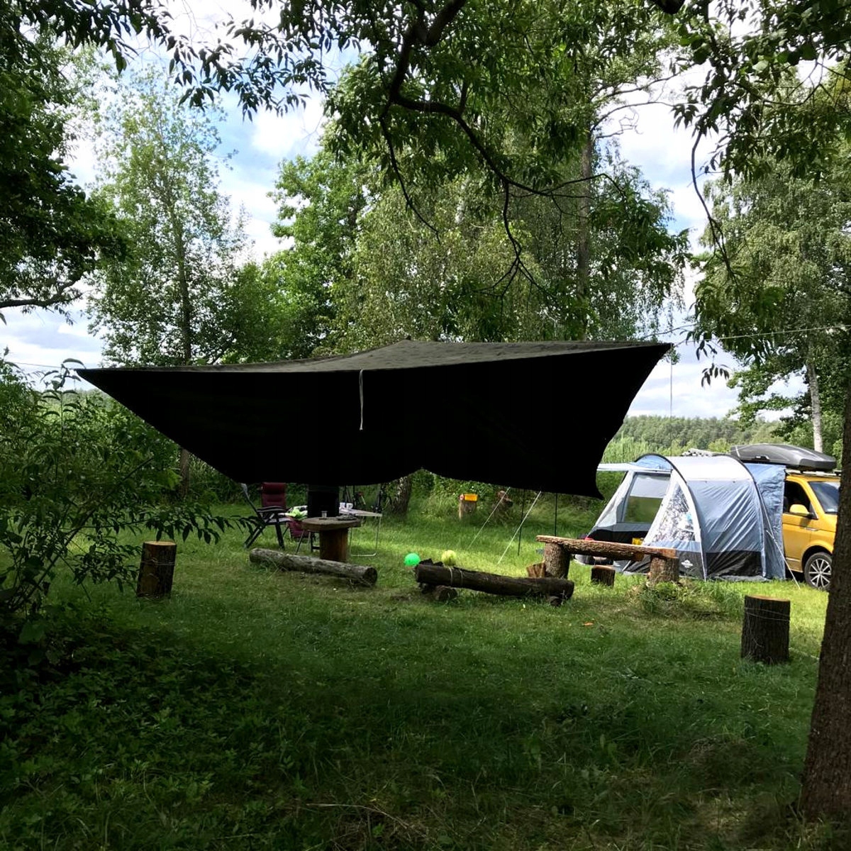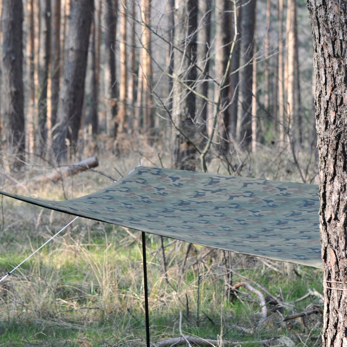 - 8 люверсів для швидкого встановлення відтяжок - їх можна легко прикріпити до дерев, транспортних засобів тощо або до стовпів намету - як показано на фото вище