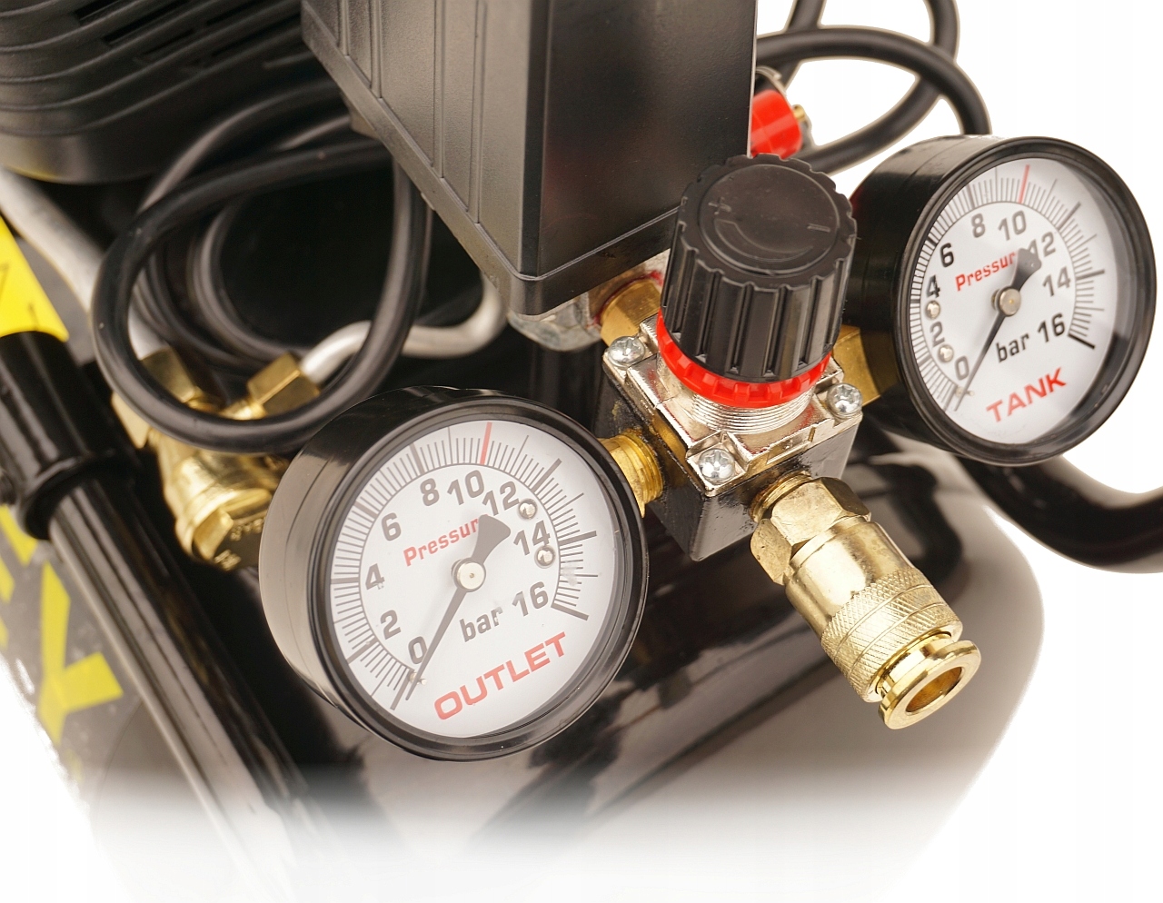 Він має 2 збільшених манометри, повітряний фільтр, який подовжує термін служби та запобіжний клапан.