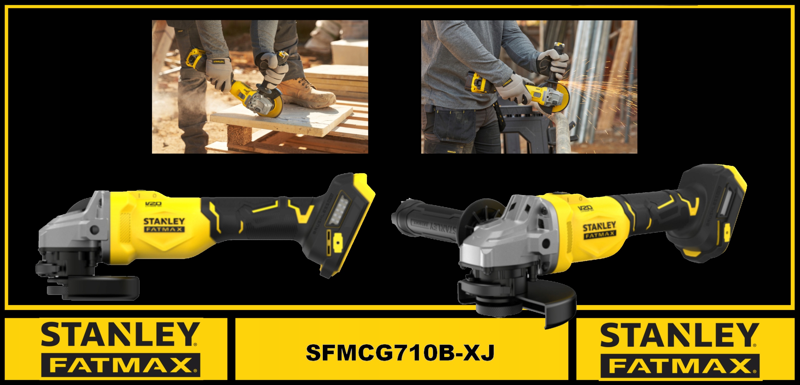 - Кутова шліфувальна машина Stanley Fatmax SFMCG710B — це ефективний безщітковий акумуляторний інструмент, призначений для різання, шліфування та обробки металу та інших матеріалів.