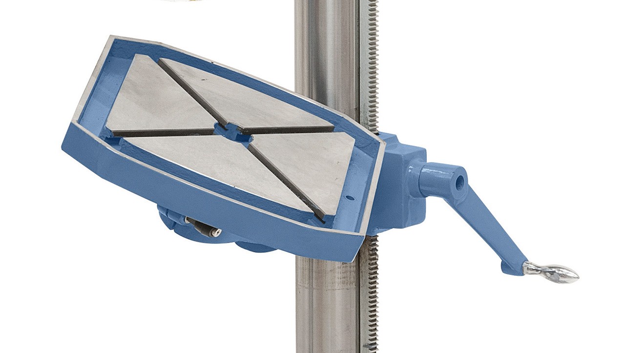 - Чавунний стіл, який обертається на 360° і нахиляється від -45° до +45°