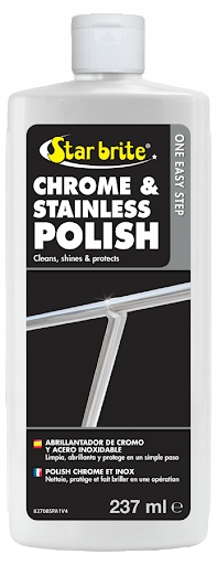 Chrome & Nendless Lalt Company Star Bite -це легкий -для використання агента з очищення та обслуговування для всіх фурніонтів на дошці та металевих прикрас, як нержавіючої сталі, так і хромової сталі. Він очищає та полірує одним прямим кроком, не вимагаючи інтенсивного полірування. Спеціальна формула швидко і легко видаляє постійний бруд, і після трохи відшліфованого залишає захисний бар'єр, який запобігає утворенню осадів, знебарвлення та смол на металевих поверхнях. Це допомагає підтримувати як нову, так і старшу металеву фурнітуру на найкращому вигляді. Також підходить для використання на міді, олові та латуні.