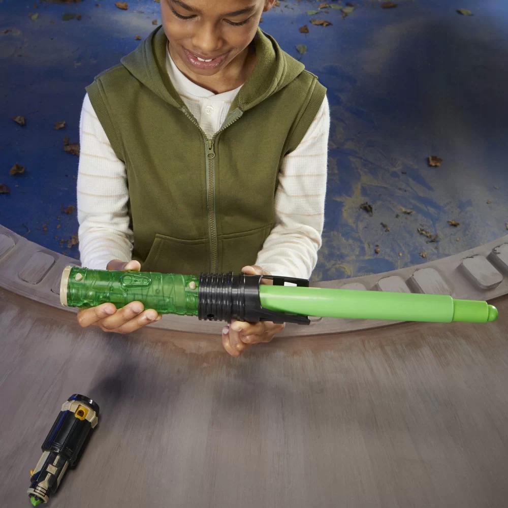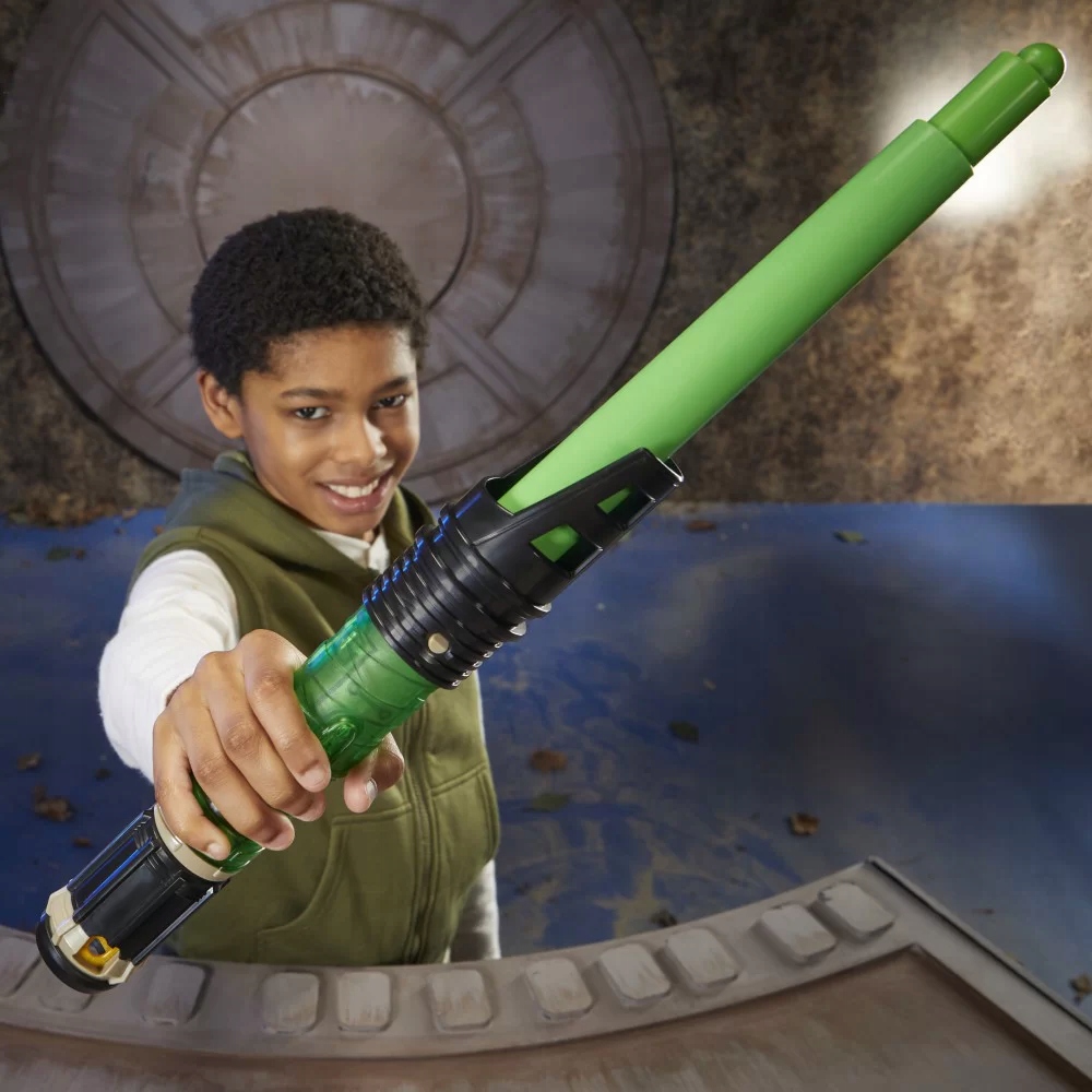 Цей неелектронний світловий меч складається з чотирьох частин: висувного зеленого леза, ковпачка, гарди та сердечника. Діти можуть зібрати свій власний світловий меч, щоб вести уявні битви по всій Галактиці!