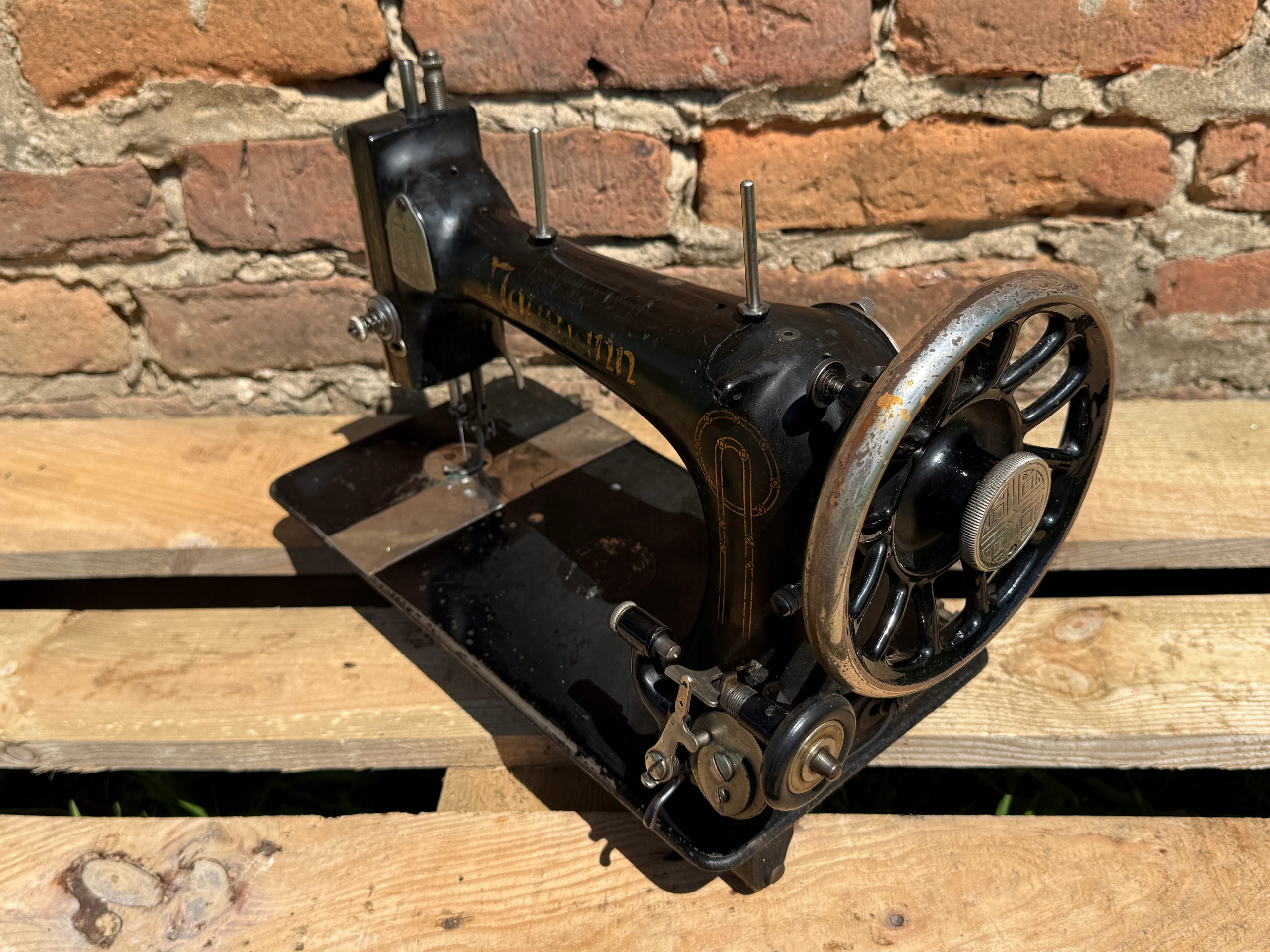 Тема аукціону - це стара насосна машина для шиття наумана. Цікава модель, гарно прикрашена квітковим мотивом. Простий доступ до механізму після відкручення одного гвинта в спину. Машина не перевіряється з точки зору ефективності. Оригінальні насоси вижили. Якщо ви шукаєте щось оригінальне, аукціон призначений для вас.