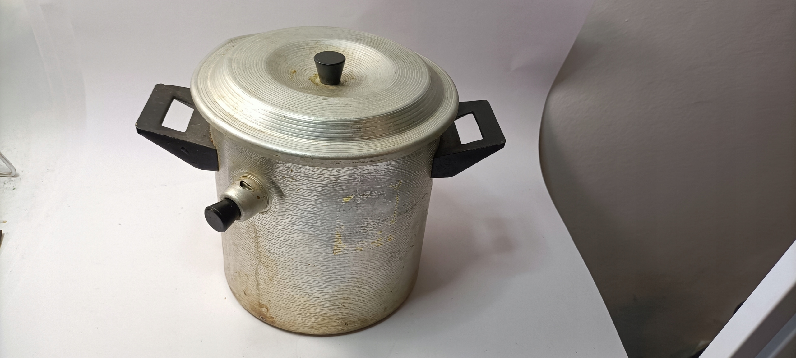 Стара алюмінієва каструля зі свистком для кип'ятіння молока, дизайн PRL