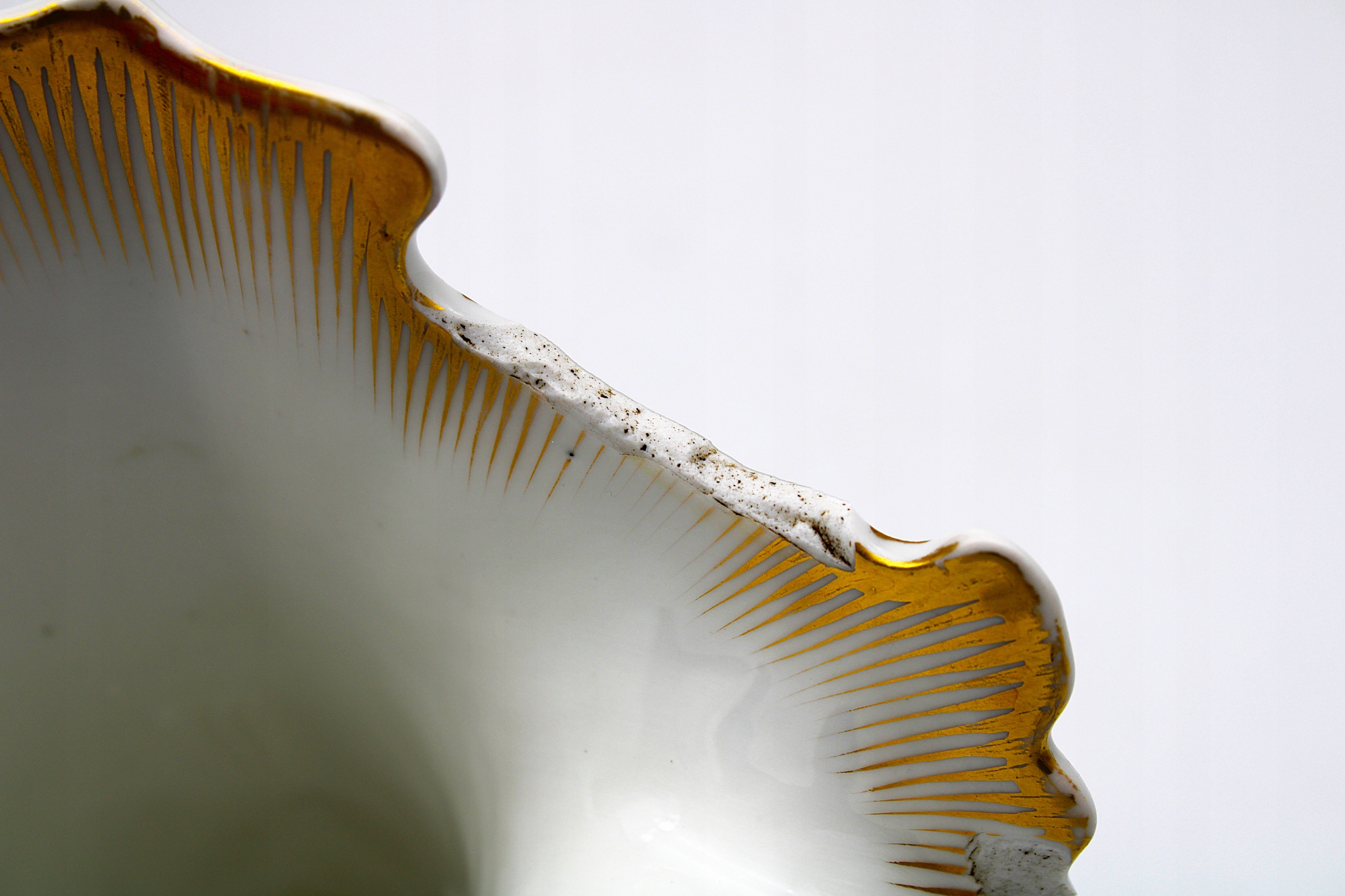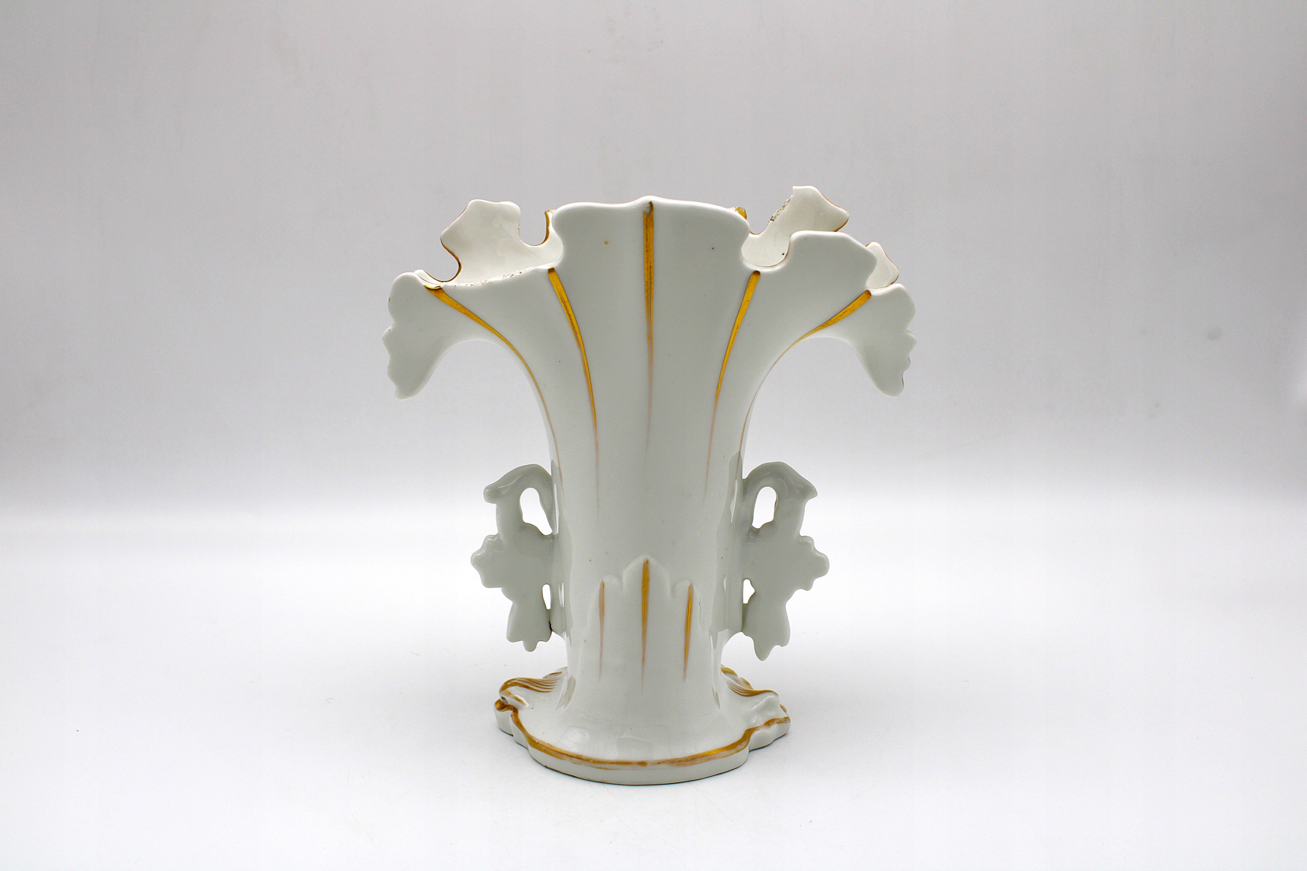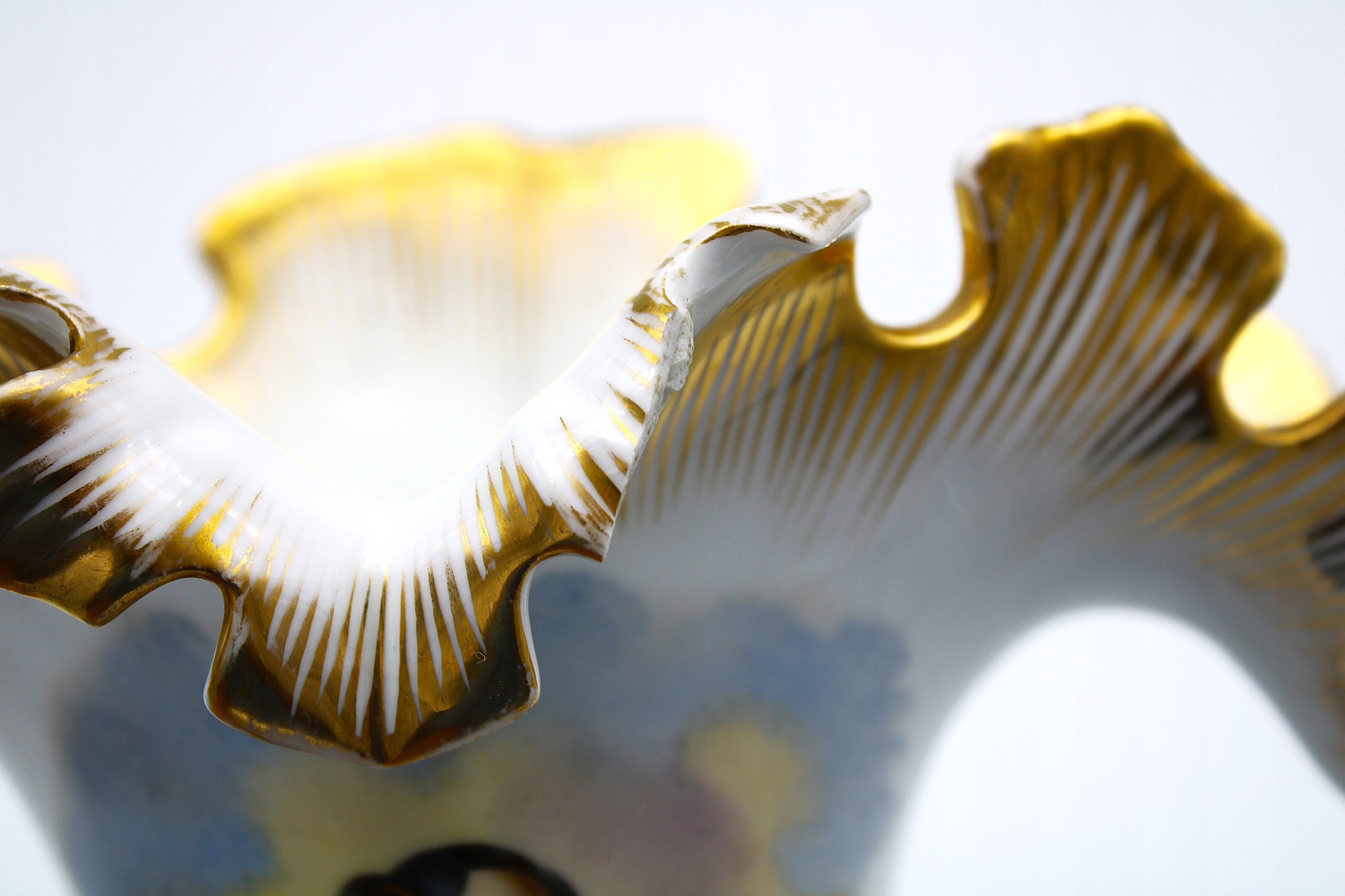 Я рекомендую стару антикварну вазу для порцелянових весільних букетів з періоду Бідермейєра, зафарбованого вручну та рукотворним, походить приблизно з 1860 року, як на скануванні, у нього є порожнини, показані на фотографії. Painting and gilding 100 % original