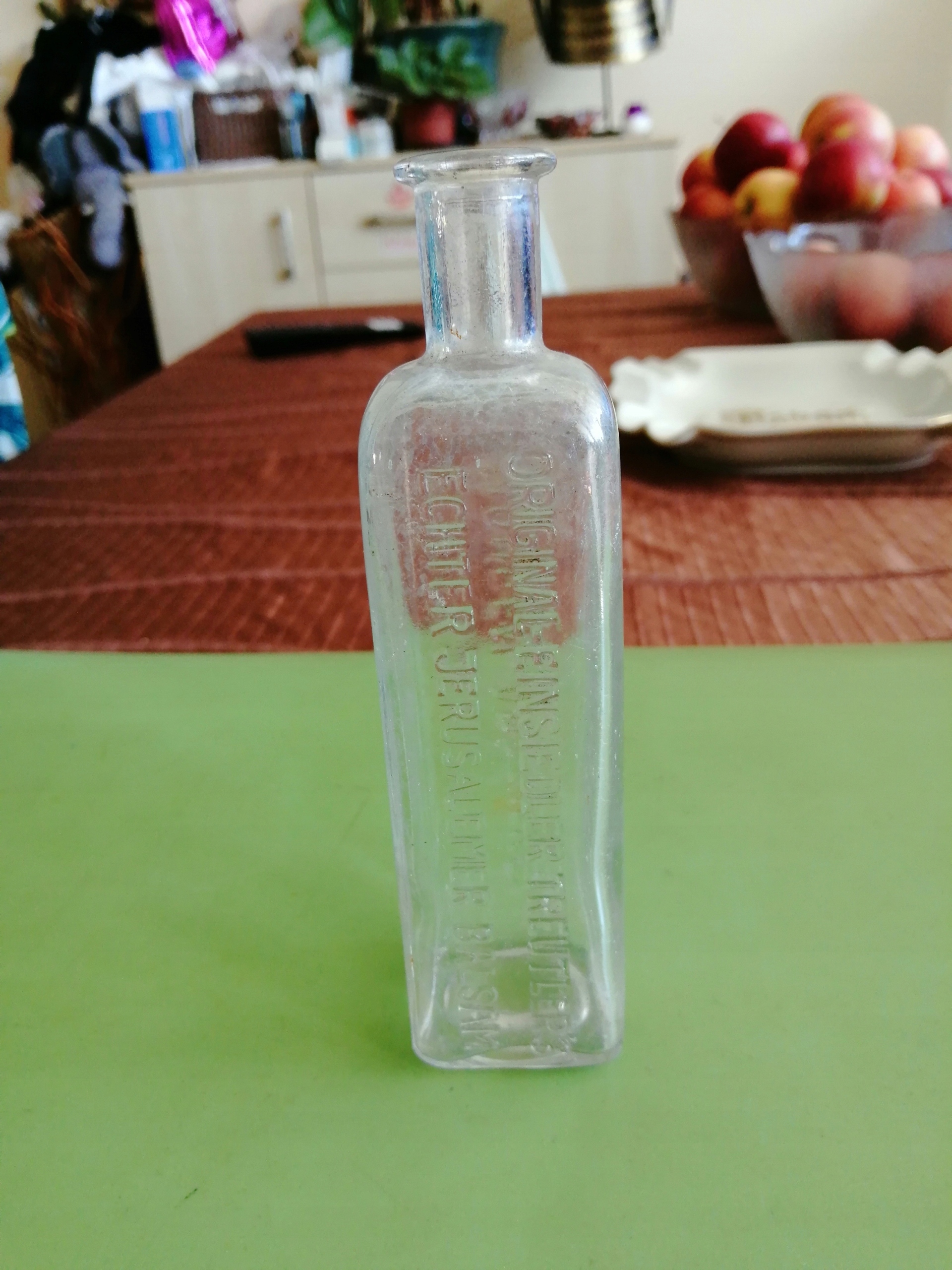 Я рекомендую стару аптечну пляшку від Glatz (Klodzko). Підписано: J.T Mohren - Apotheke Glatz Original - Einsiedler Treutlers Echter Jerusalemer Balm. Висота 14 см.