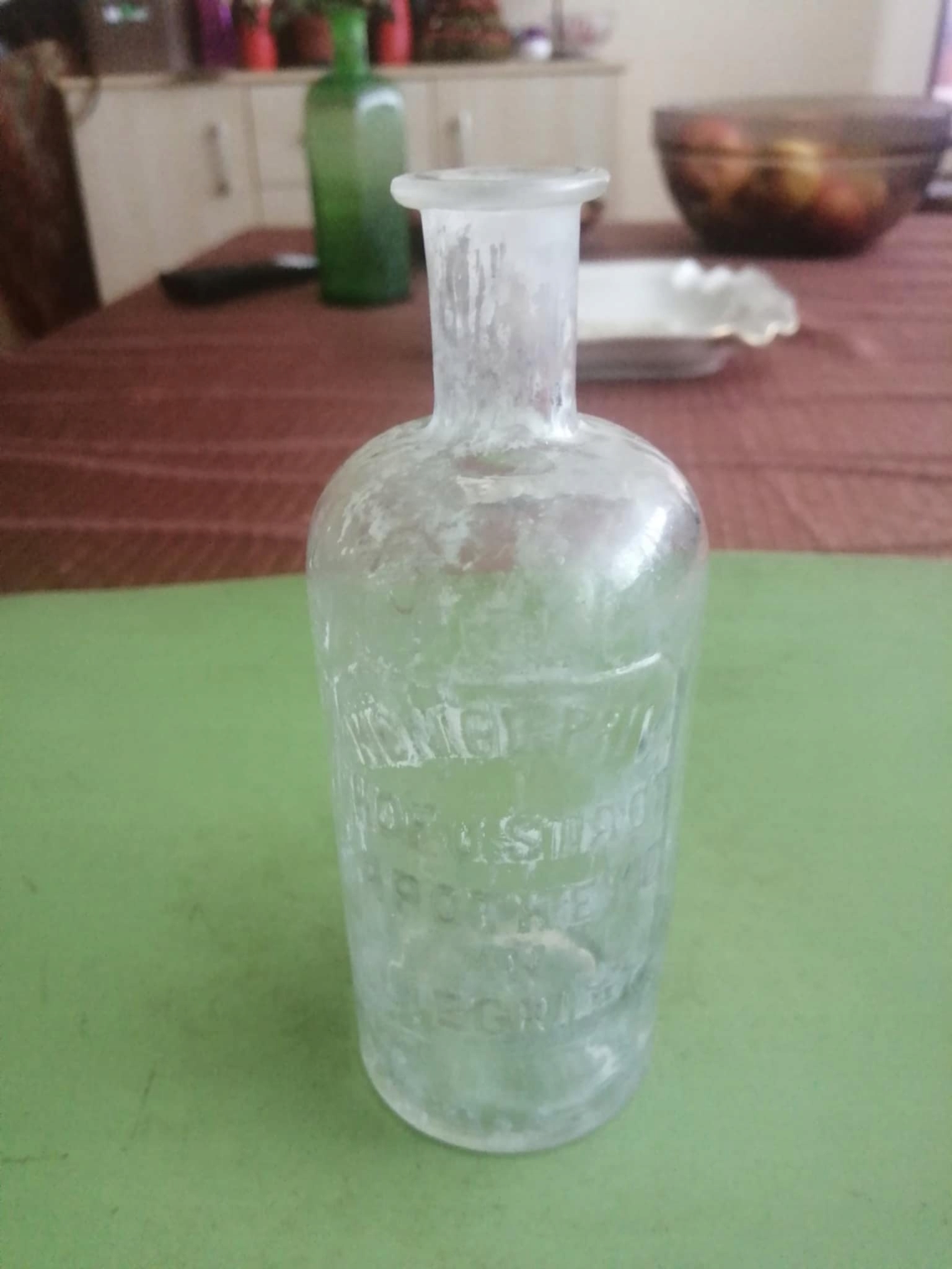 Я рекомендую стару аптечну пляшку з Liegnitz (Legnica). Підписано: konigl.priv hof-u.stadt Apotheke в Лігніц. Ємність 180 мл.
