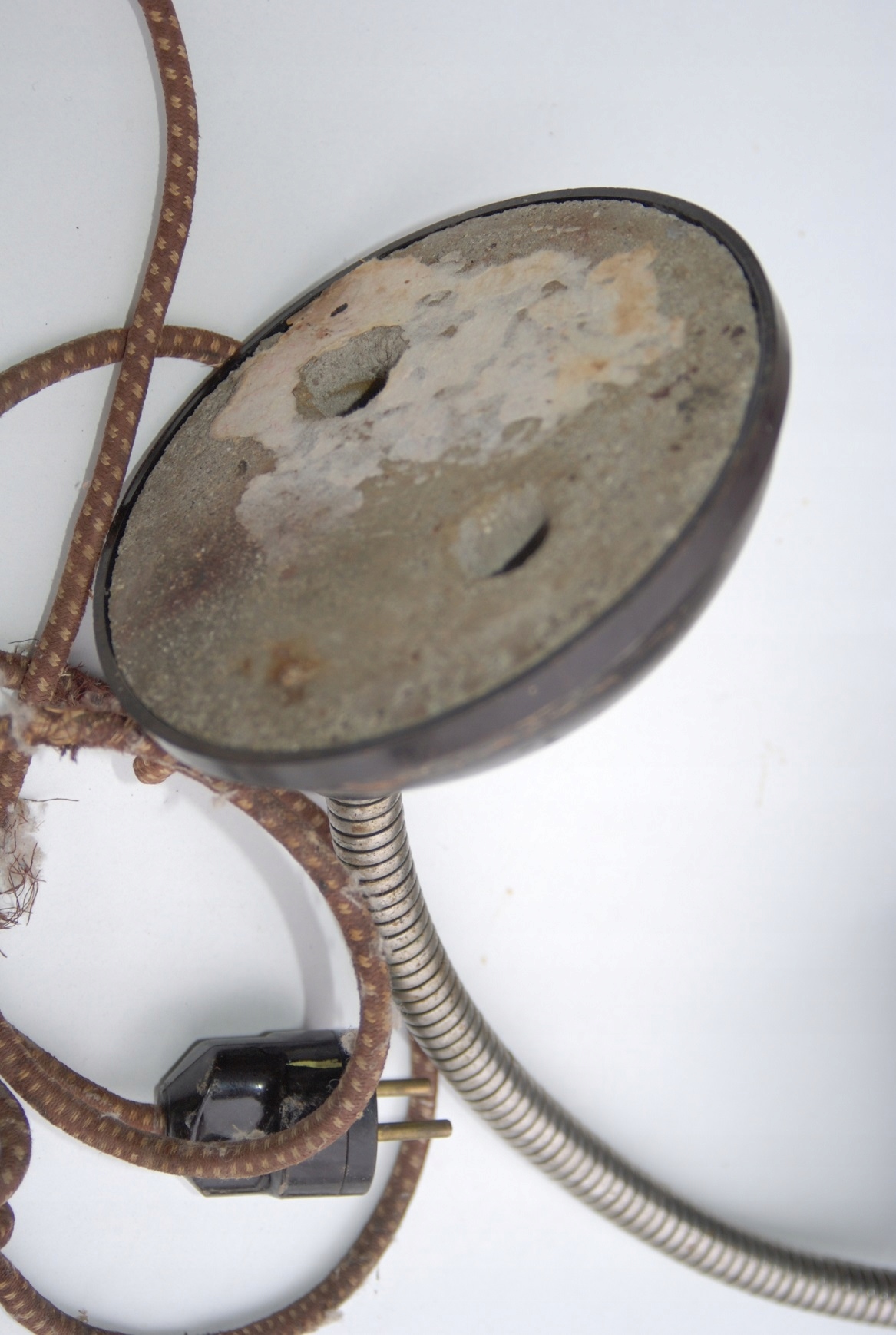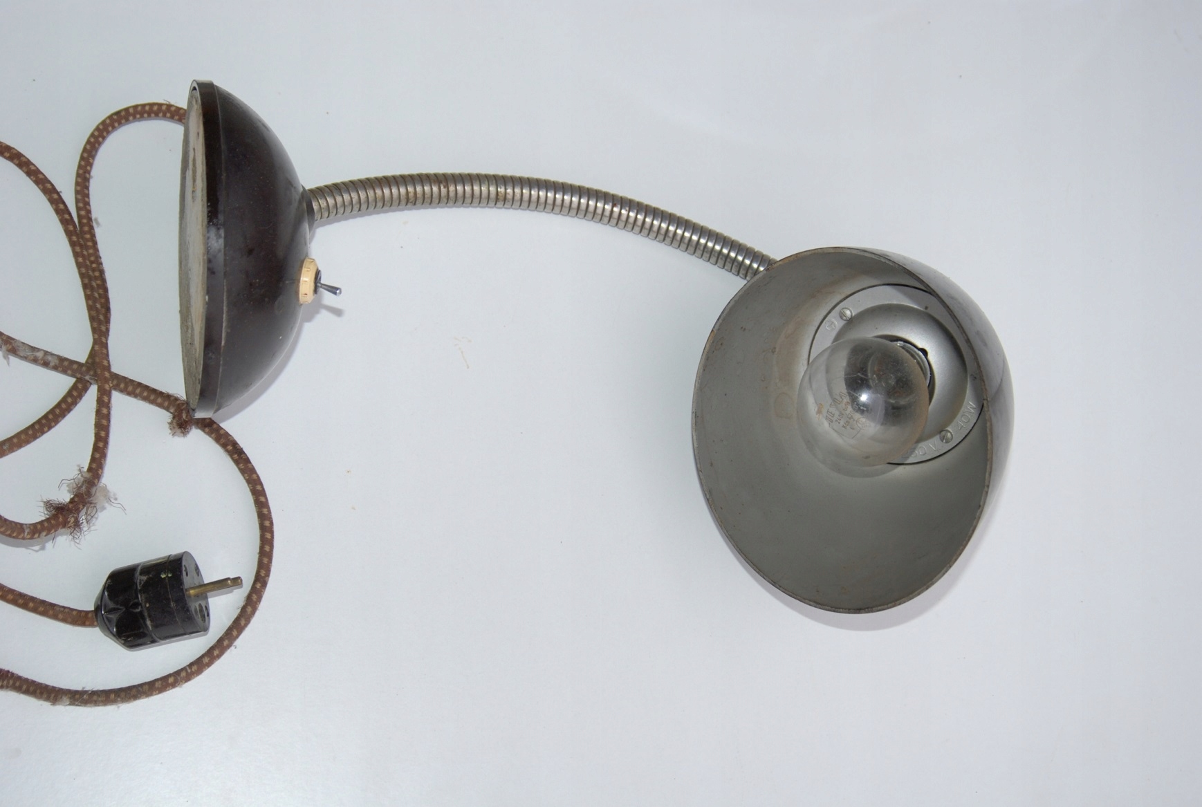 Представлений світильник із так званою «гусячою шиєю», що дозволяє будь-яке регулювання положення світла, походить із Чехословаччини. Він виготовлений з чорного бакеліту та сталі. Лампа в оригінальному вінтажному стані