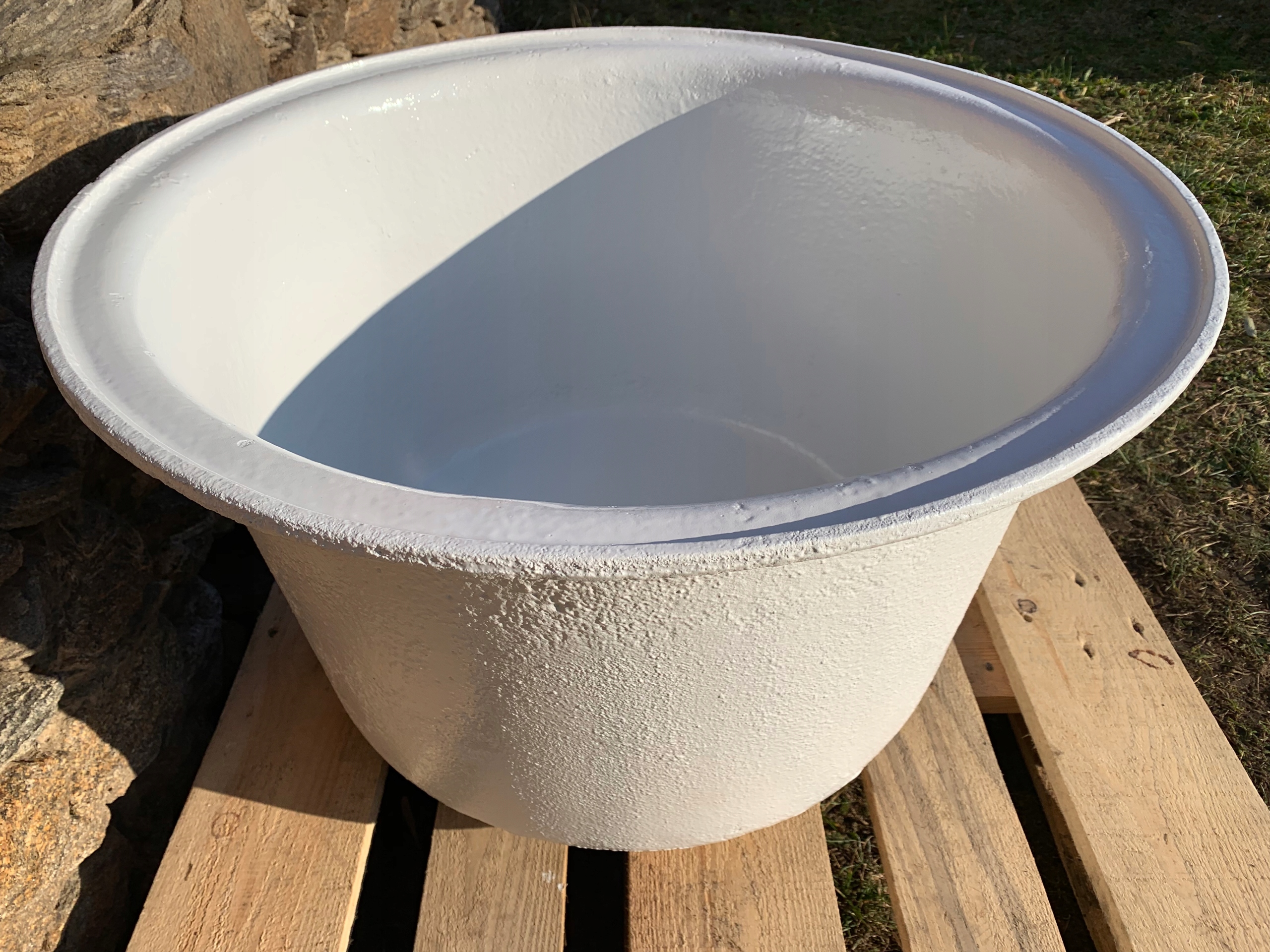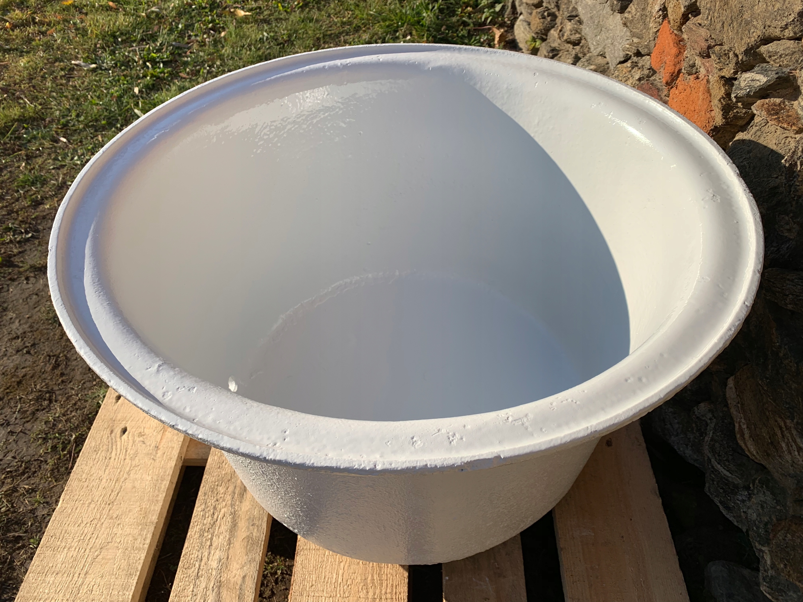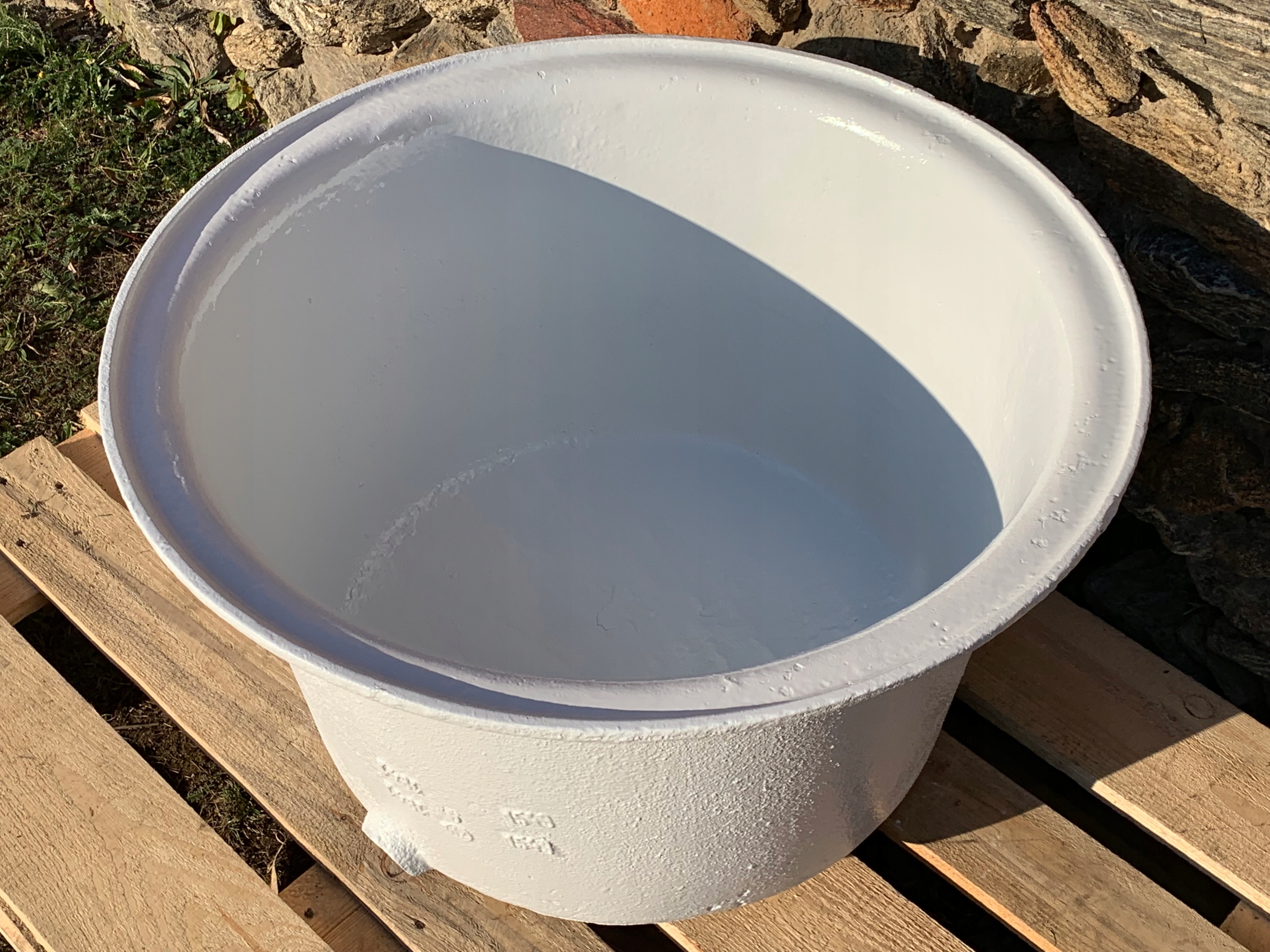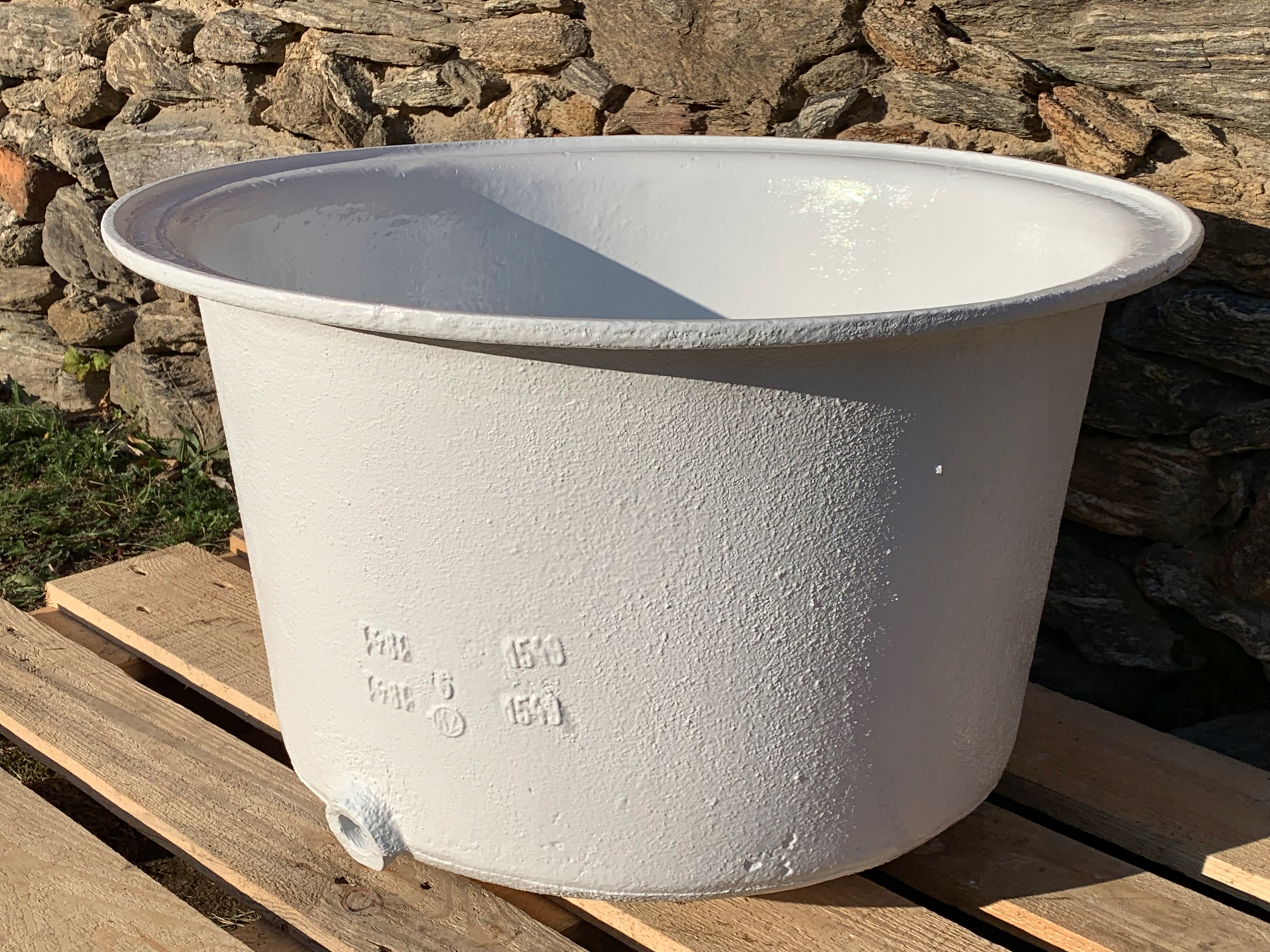 Предметом аукціону є стара чавунна джакузі. Підпис ливарного заводу видно на передній частині.