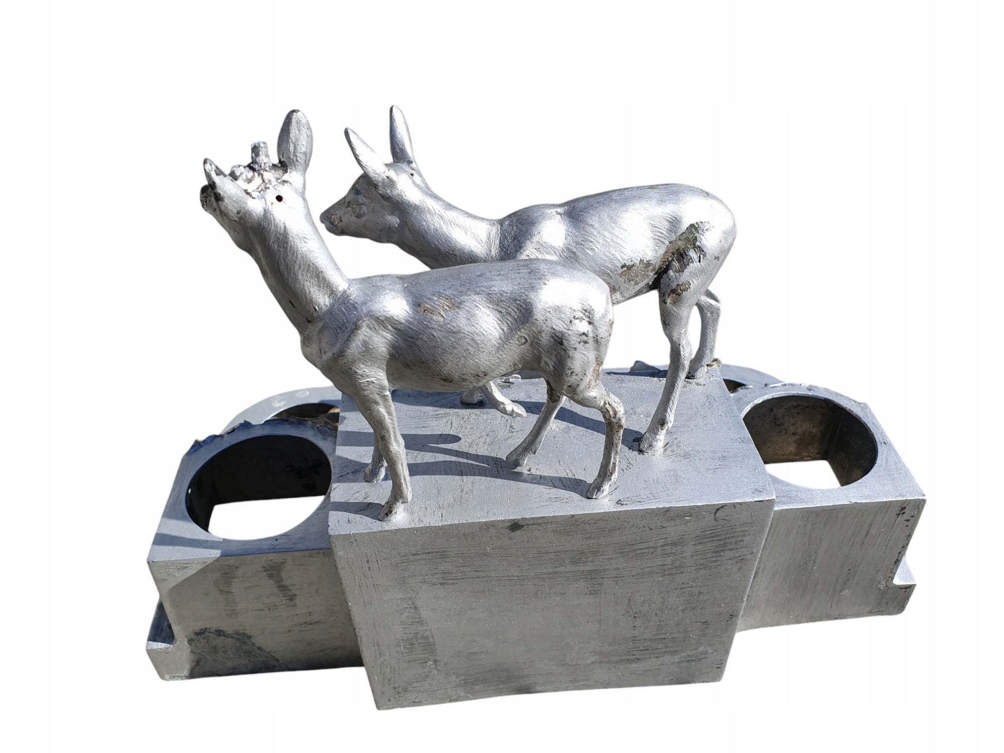 На продаж пропоную унікальну старовинну чорнильницю з алюмінію, ймовірно 19 століття. Це виріб довоєнного періоду, який вирізняється багатим декором та унікальною художньою формою. Чорнильниця має фігурне зображення двох оленів, що стоять на платформі, що робить її не лише практичним елементом старих офісів, але й декоративним витвором мистецтва.