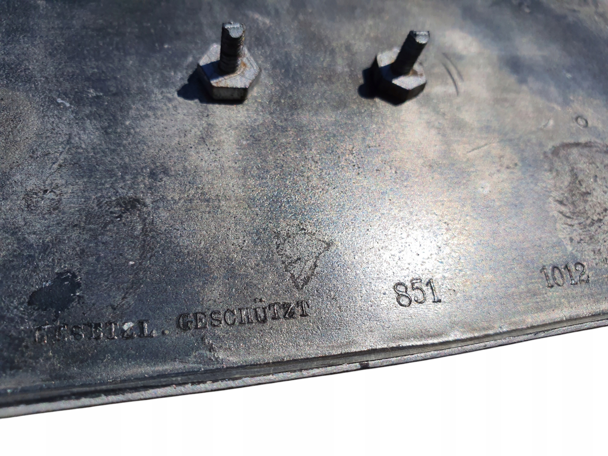 На дні чорнильниці є підпис. «Gesetzlich geschützt», що німецькою мовою означає «законно захищений», що вказує на запатентований дизайн і німецьке походження предмета. Крім того, вибиті номери 851 і 1012, які можуть вказувати на модель або серію виробництва.
