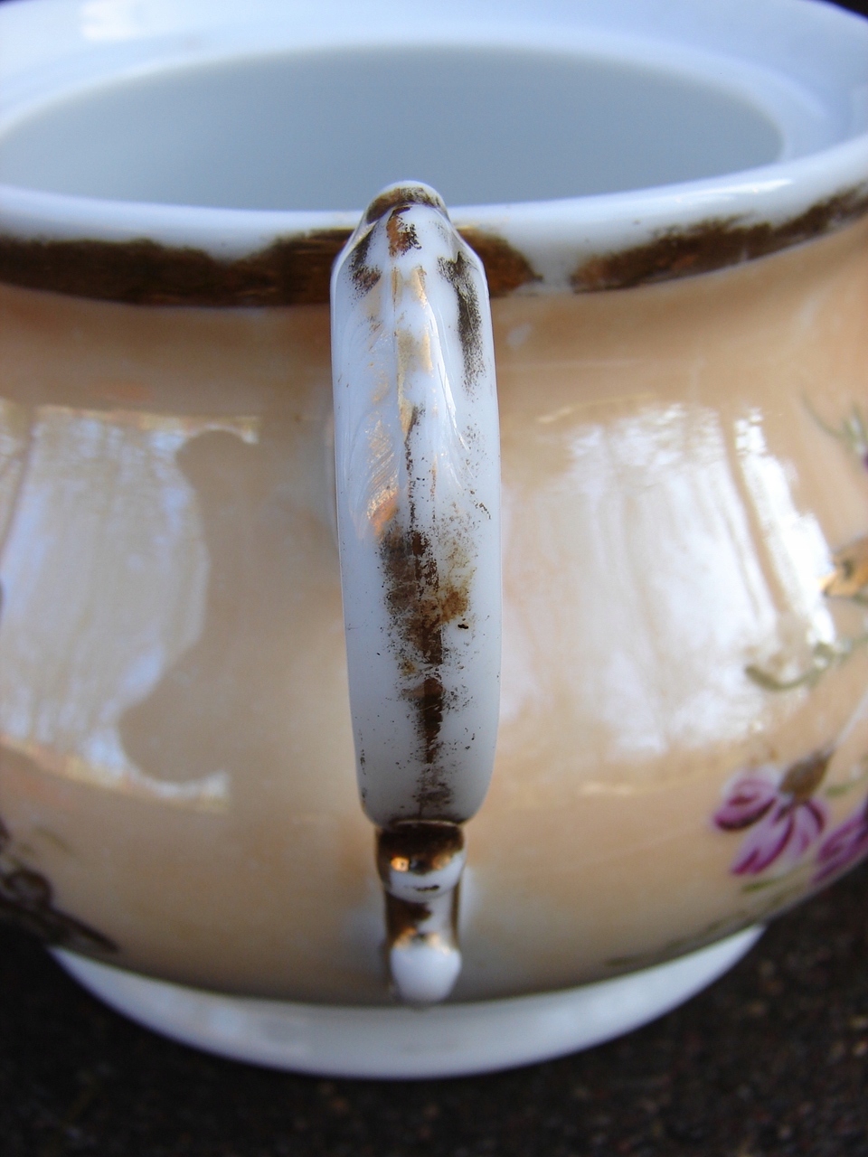Стара порцелянова цукорниця, прикрашена вручну квітковим мотивом та оздобленням зі старого золота.