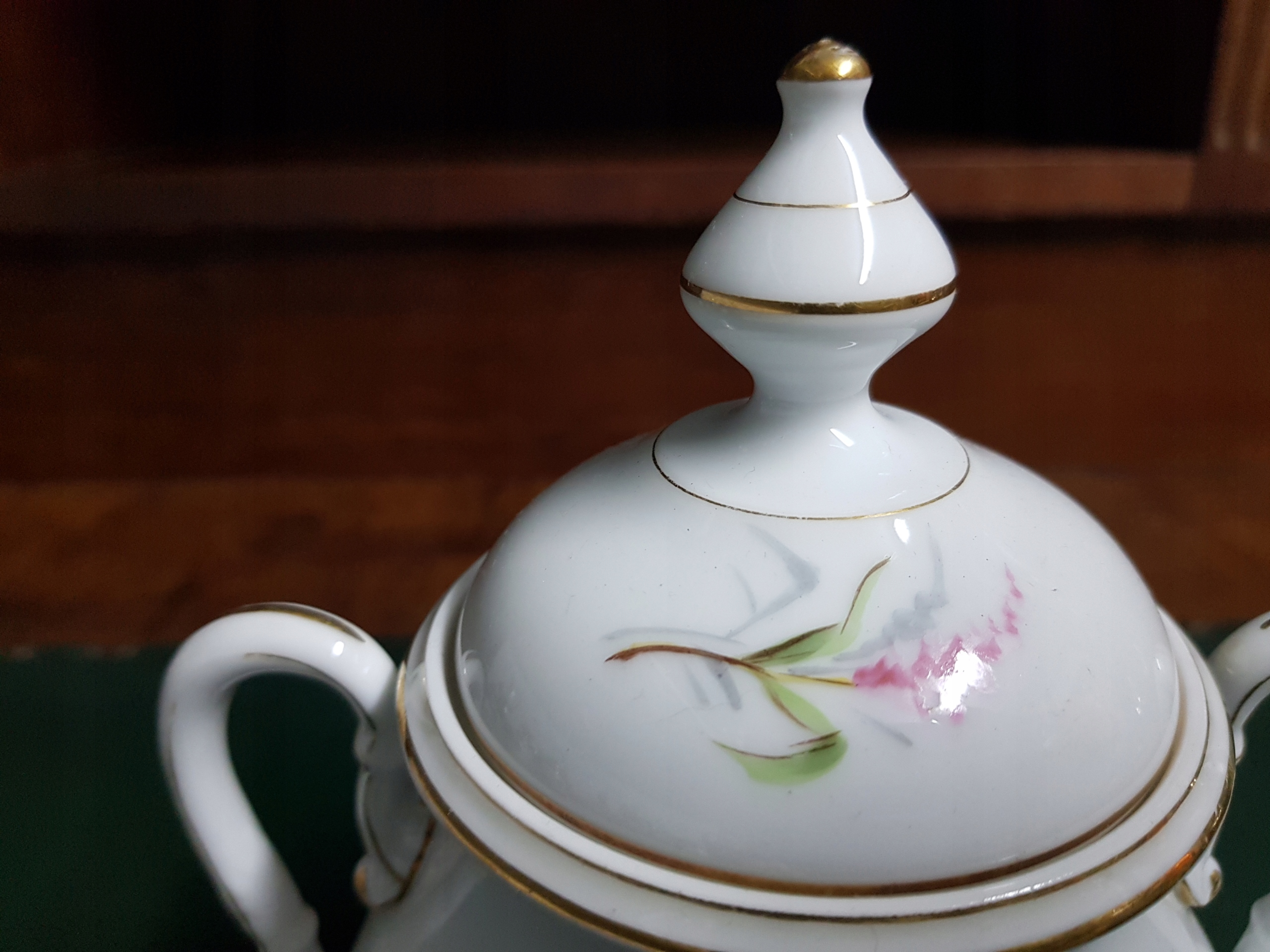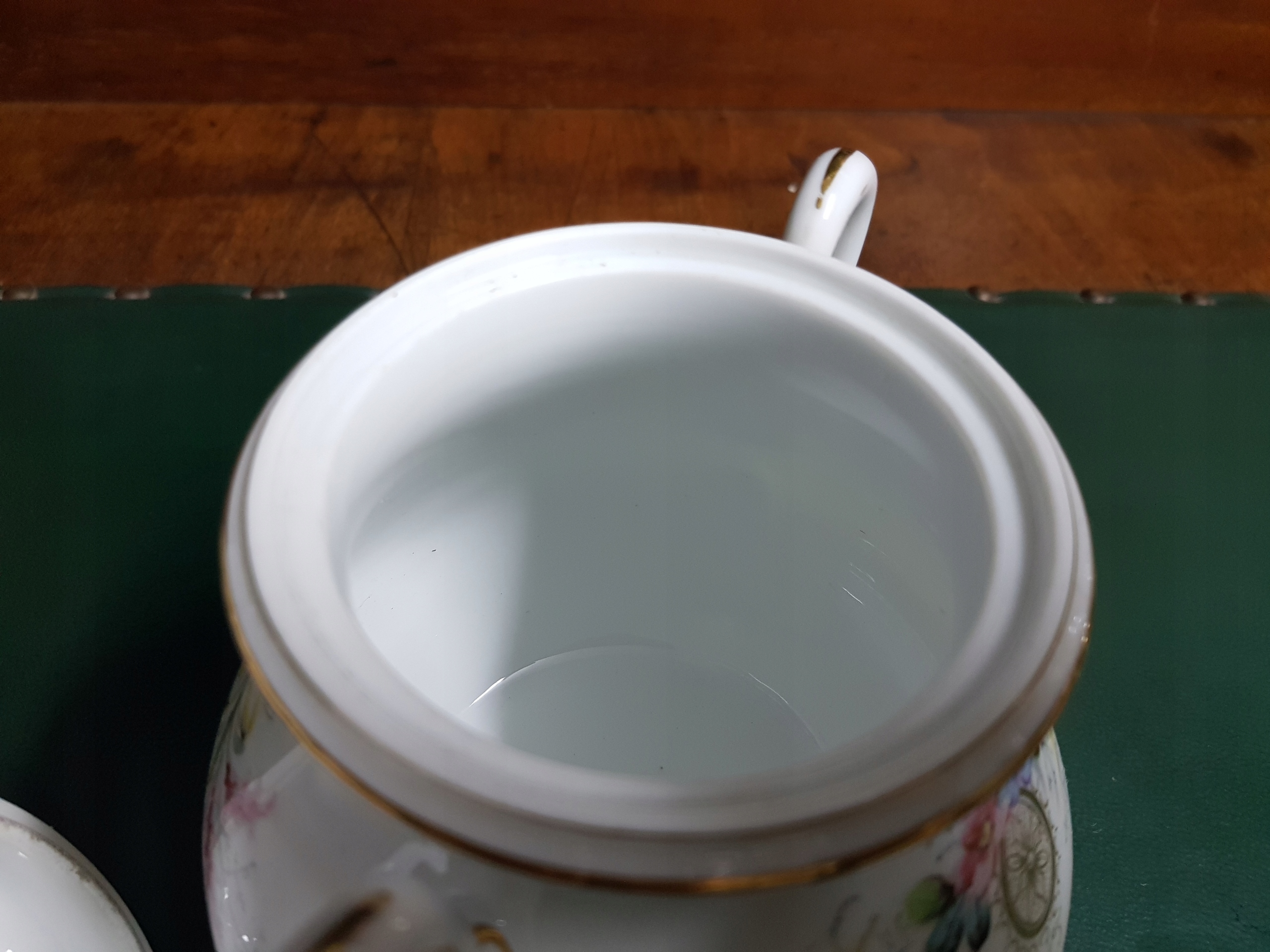 Предметом аукціону є велика цукорниця від Hutschenreuther. Підпис витиснуто в пасті HR. Розписані вручну квіткові мотиви.