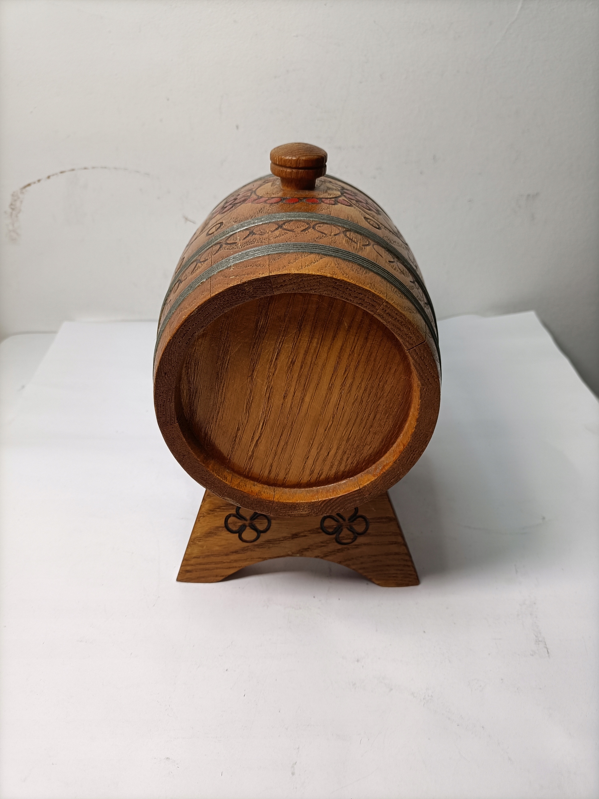 Стара дерев'яна бочка для віскі 1960-х років на підставці