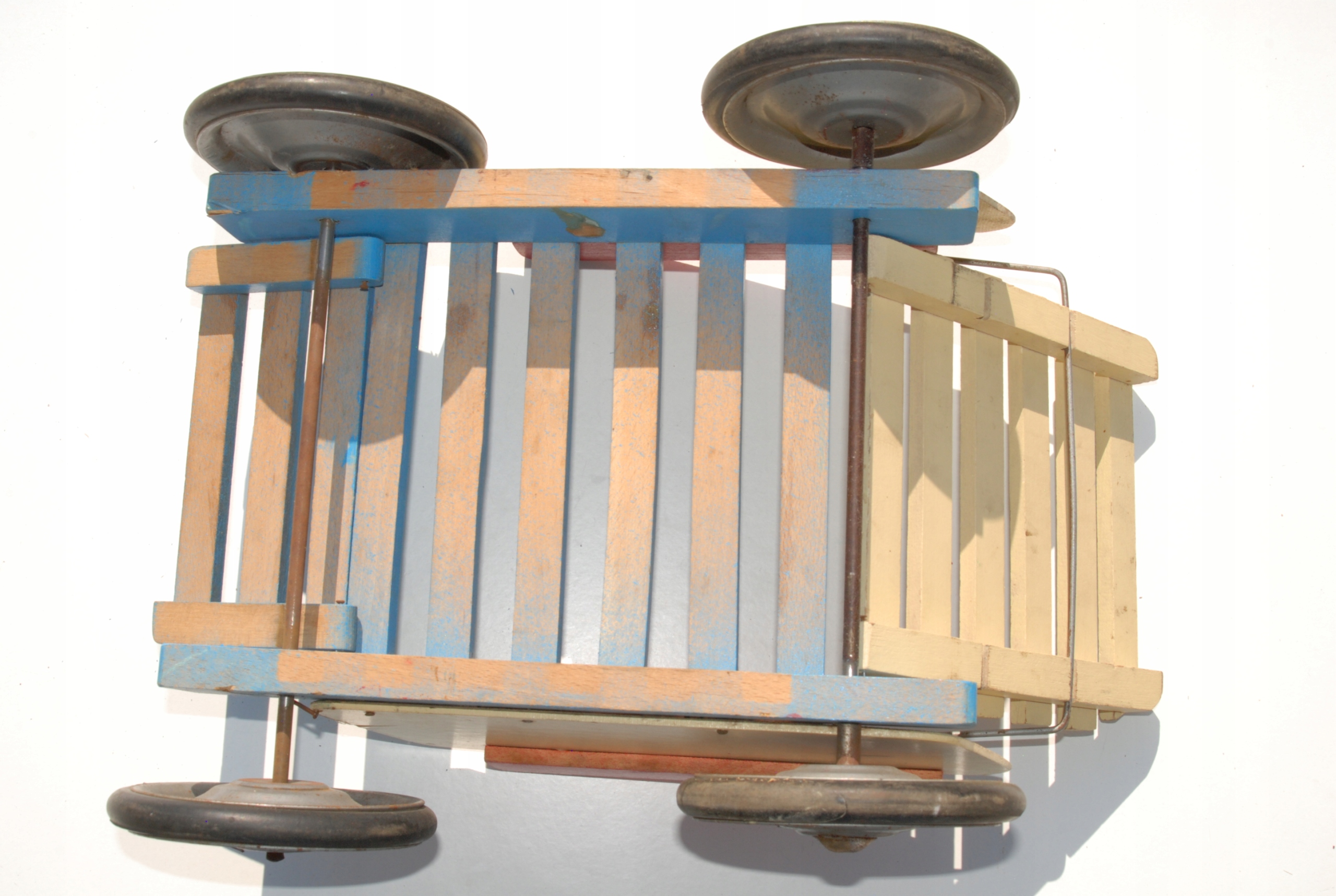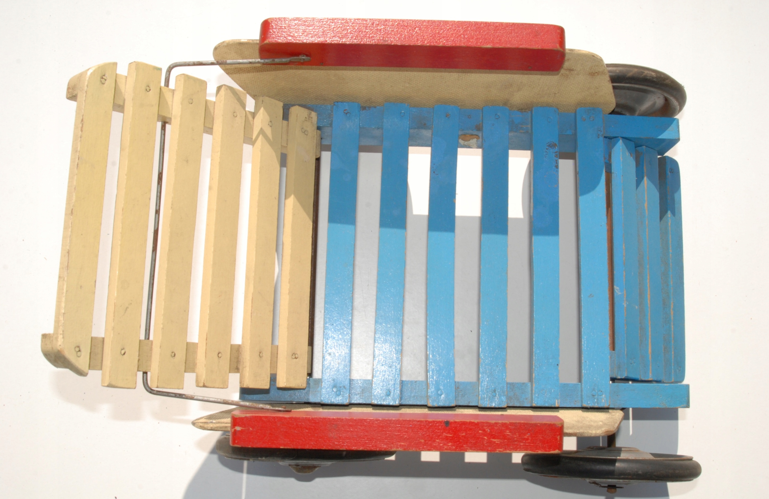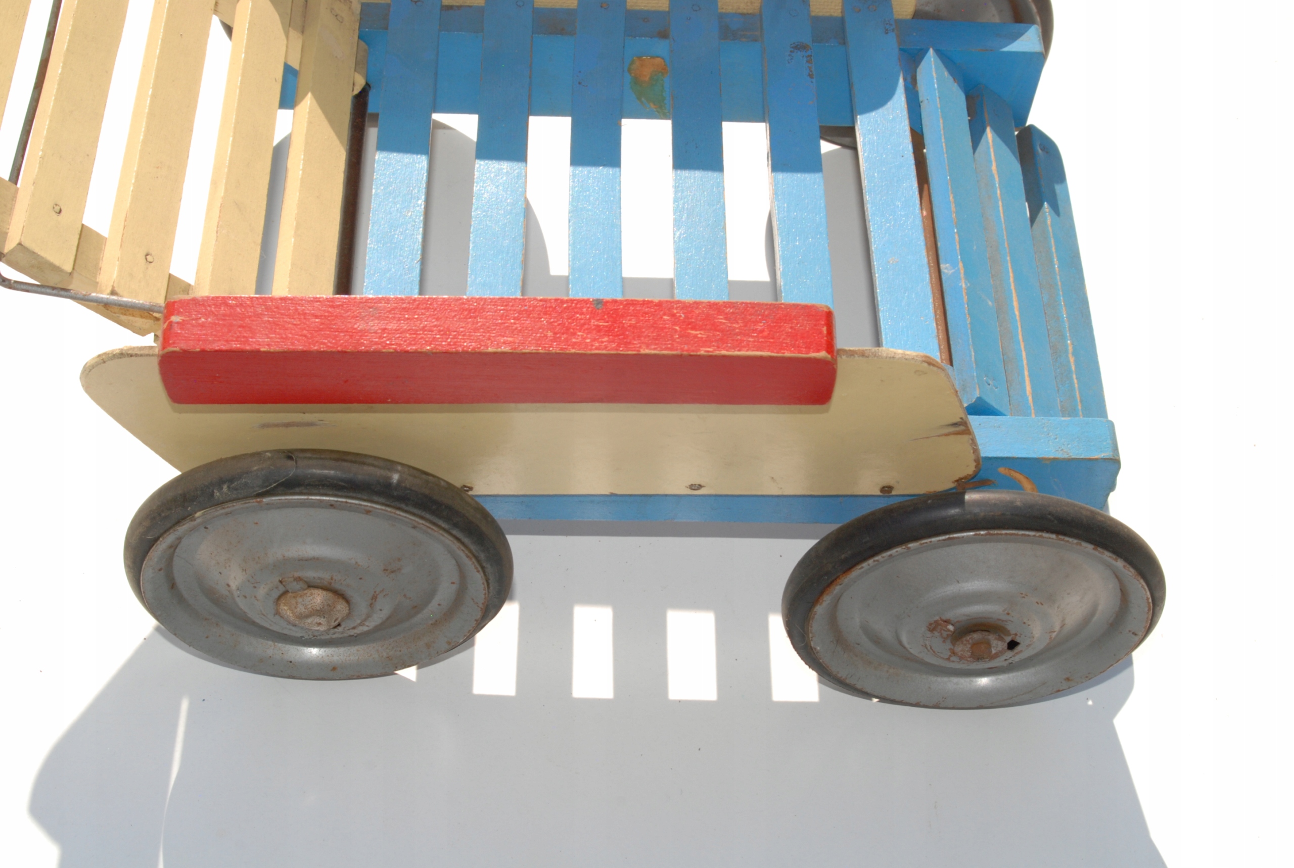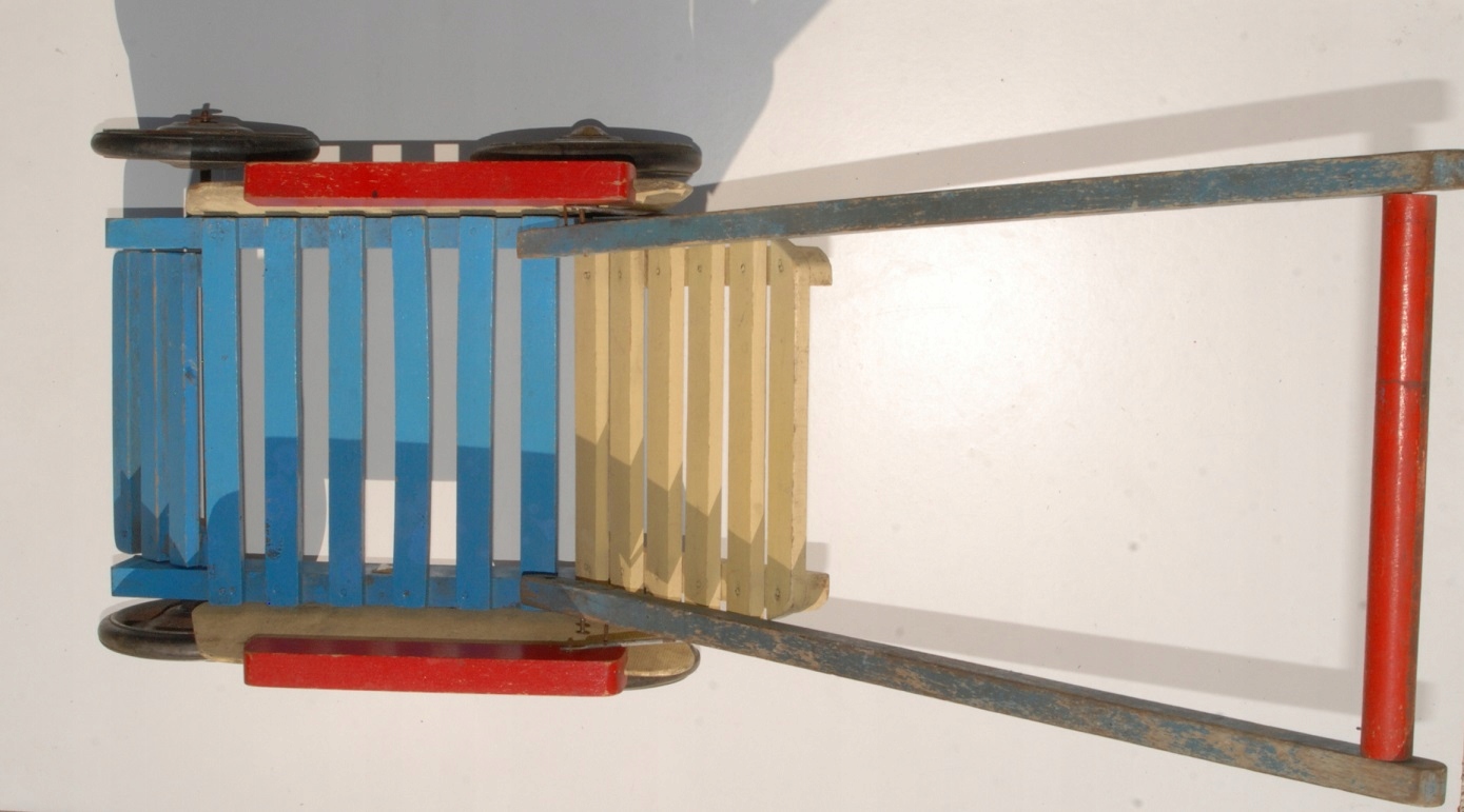 Стара дерев'яна коляска для лакових ляльок, унікальна старовинна