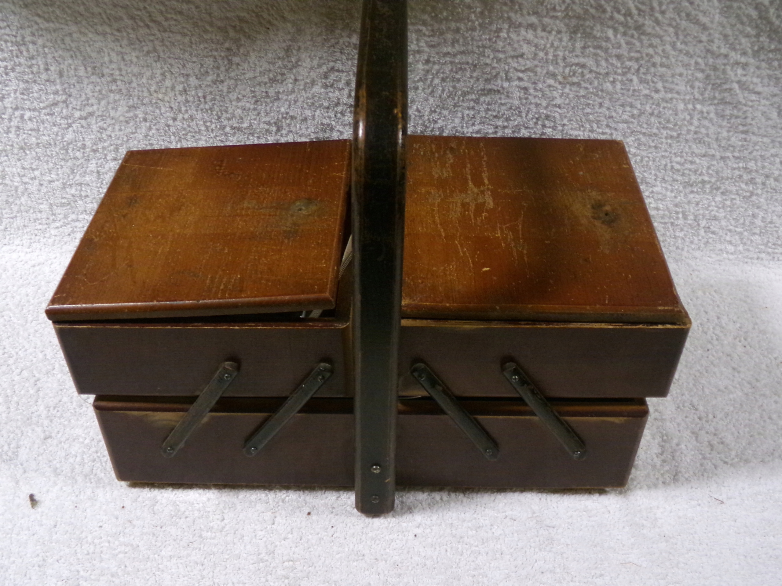 Стара дерев'яна нитка, розміри 36х18х29,5 см, вага 3,18 кг. Хороший стан, звичайні сліди використання, без ручок, і вам потрібно прикріпити елемент кришки, переглянути фотографії, безкоштовні аксесуари.