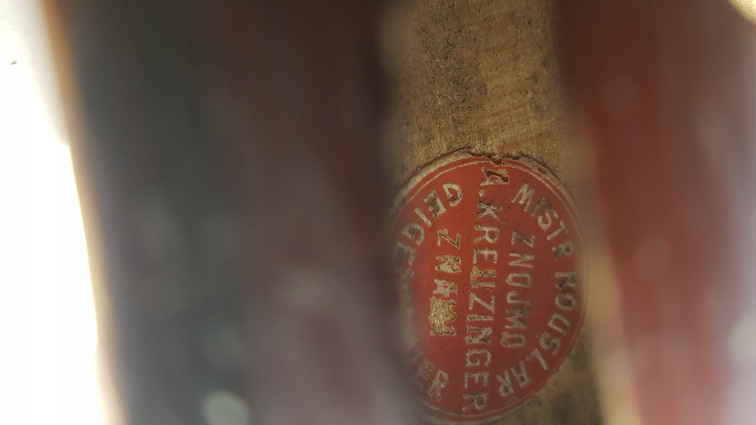 Підпис: як на фото, нота з внутрішньої сторони скрипки Антон Кройцінгер, Гейгенмахер
