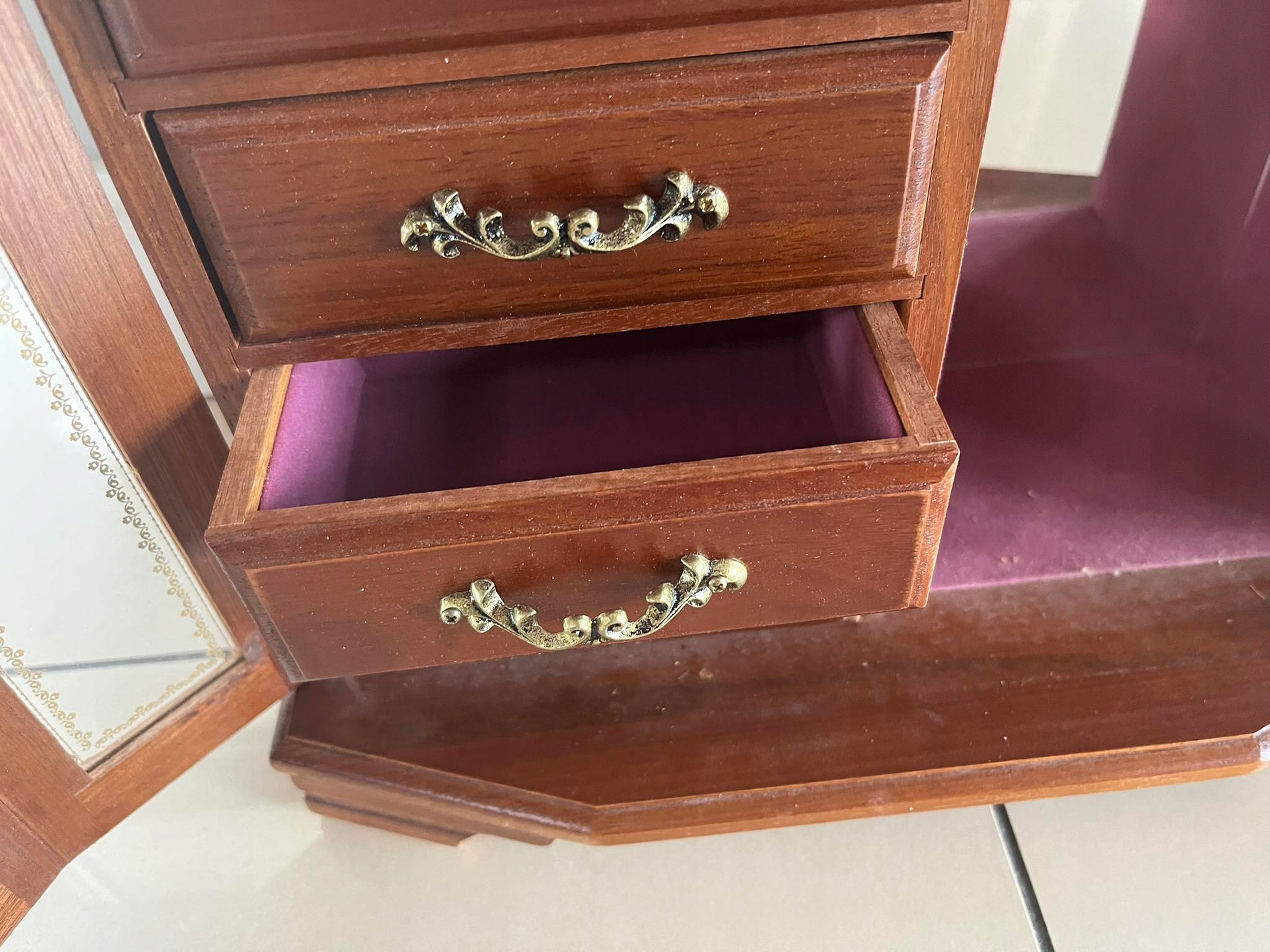 Stara duża drewniana szkatułka szafka pozytywka Märchen Möbel vintage