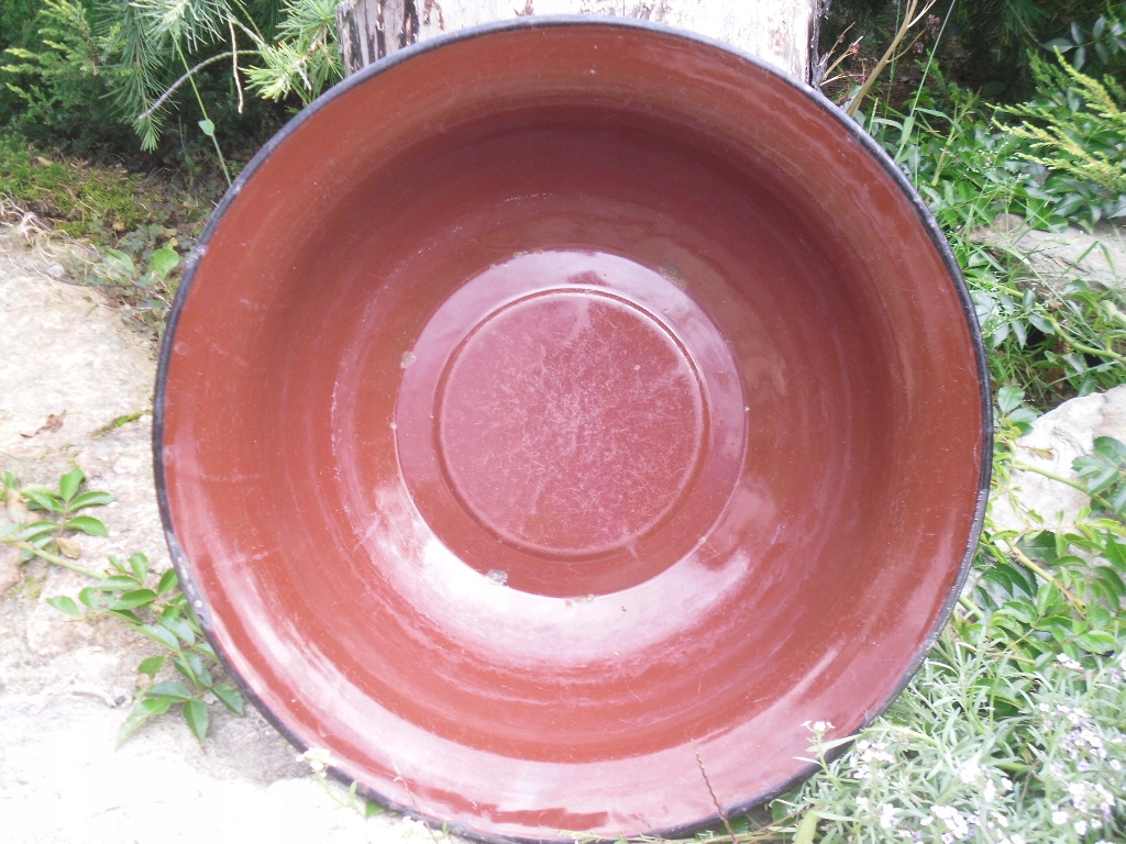 Ласкаво просимо на мій аукціон. На аукціонах я зазвичай пропоную вам речі періоду Польської Народної Республіки. Na tej aukcji oferuję ORYGINALNĄ miskę stalową emaliowaną. Коричнева миска з чорним обідком. Через свій вік миска має звичайні сліди використання у вигляді дрібних подряпин і делікатних потертостей, потертості емалі. Чаша SIGNWANA. Чаша НЕ прогнута. /див. фото/