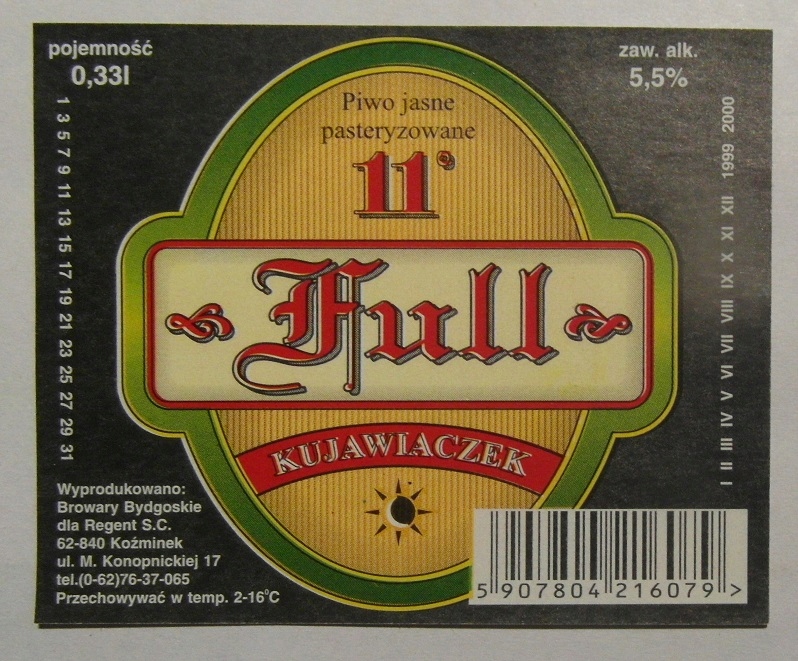 СТАРА ЕТИКЕТКА ПИВА BROWARY BYDGOSKIE BYDGOSZCZ BOTTLING ROOM REGENT KOŹMINEK