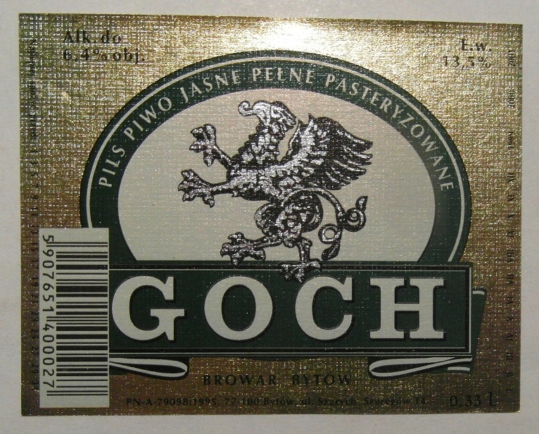 СТАРА ЕТИКЕТКА СВІТЛОГО ПИВА PILS BROWAR GOCH BYTÓW