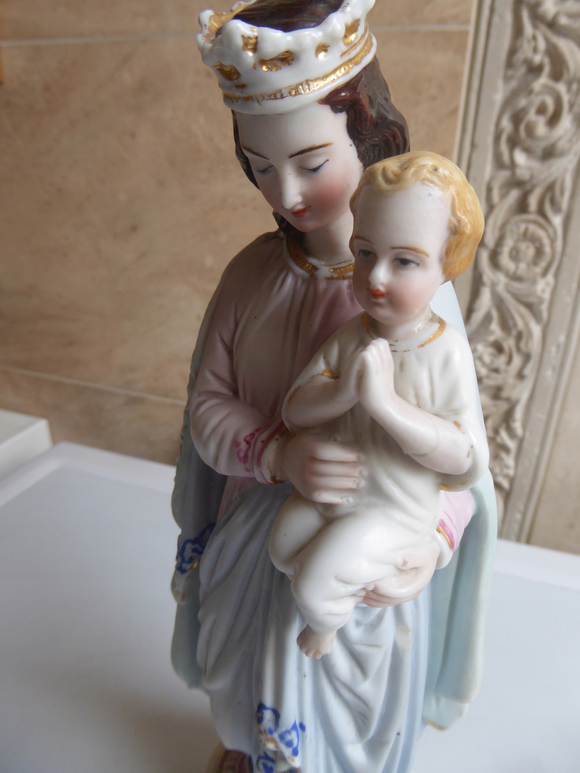 Stara Figurka Maryja z Jezusem sygnowana 28 cm Promocja