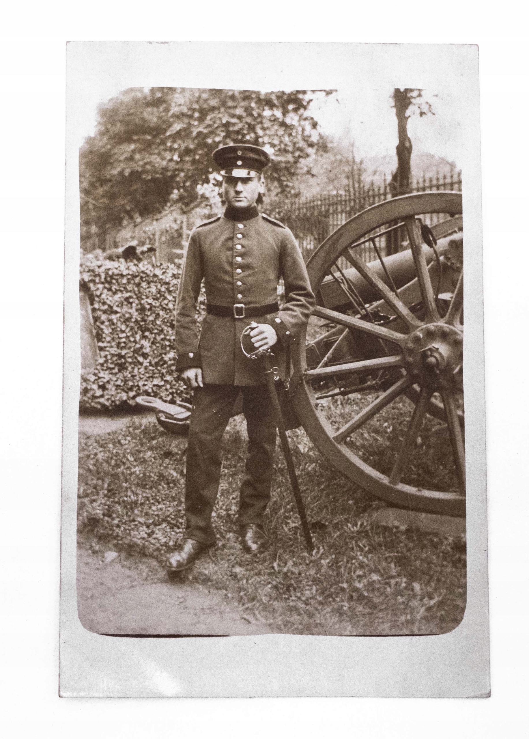STARA FOTOGRAFIA - ŻOŁNIERZ PRUSKI PRZY ARMACIE, I WŚ
