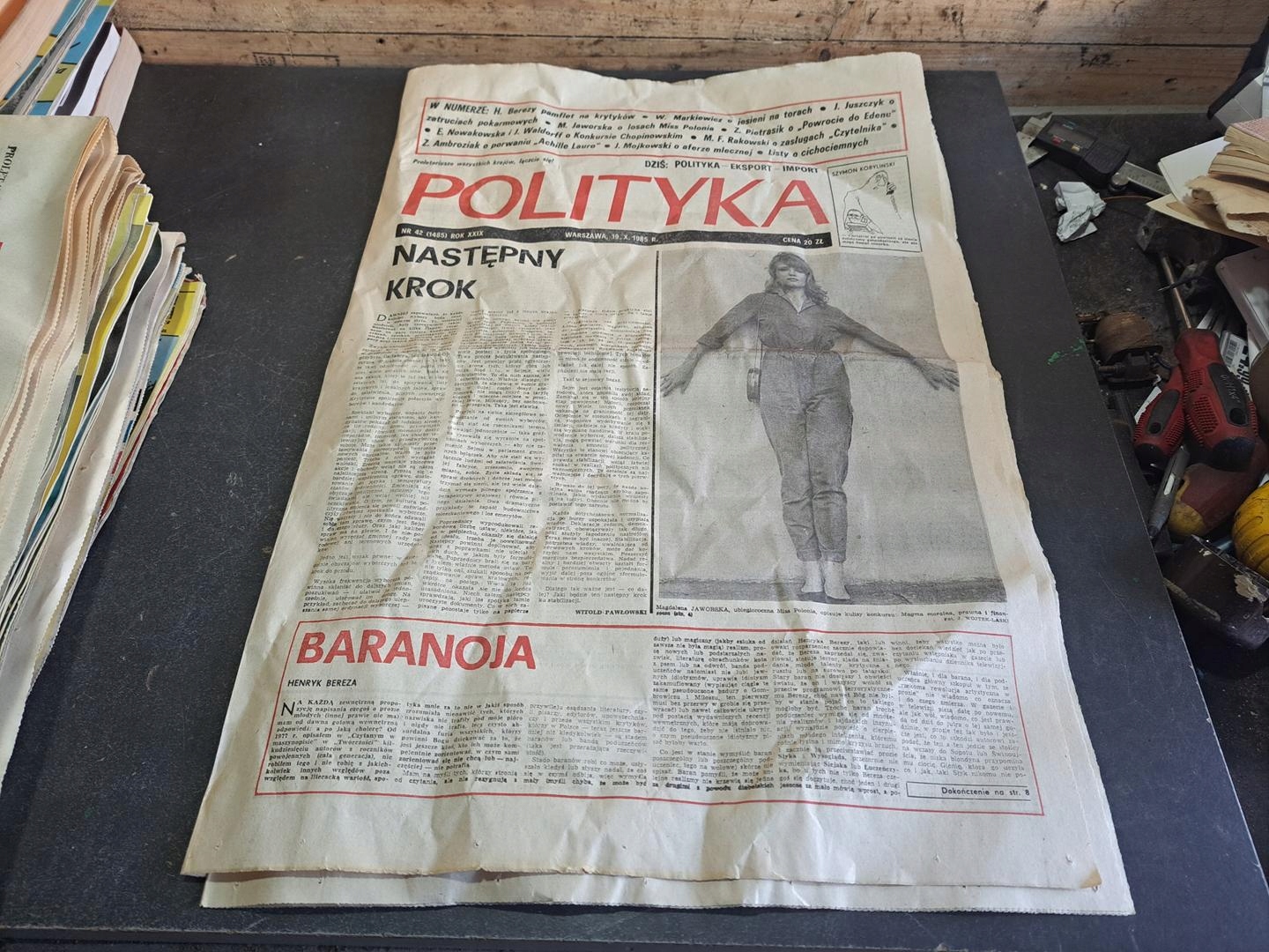СЬОГОДНІШНІЙ АУКЦІОН – СТАРА ГАЗЕТА ТИЖНЕВИК «ПОЛІТИКА» 19 жовтня 1985 р. PRL 42 (1485). СТАН ТА РІК ВИПУСКУ, ЯК ПОКАЗАНО НА ДОДАНИХ ФОТОГРАФІЯХ.