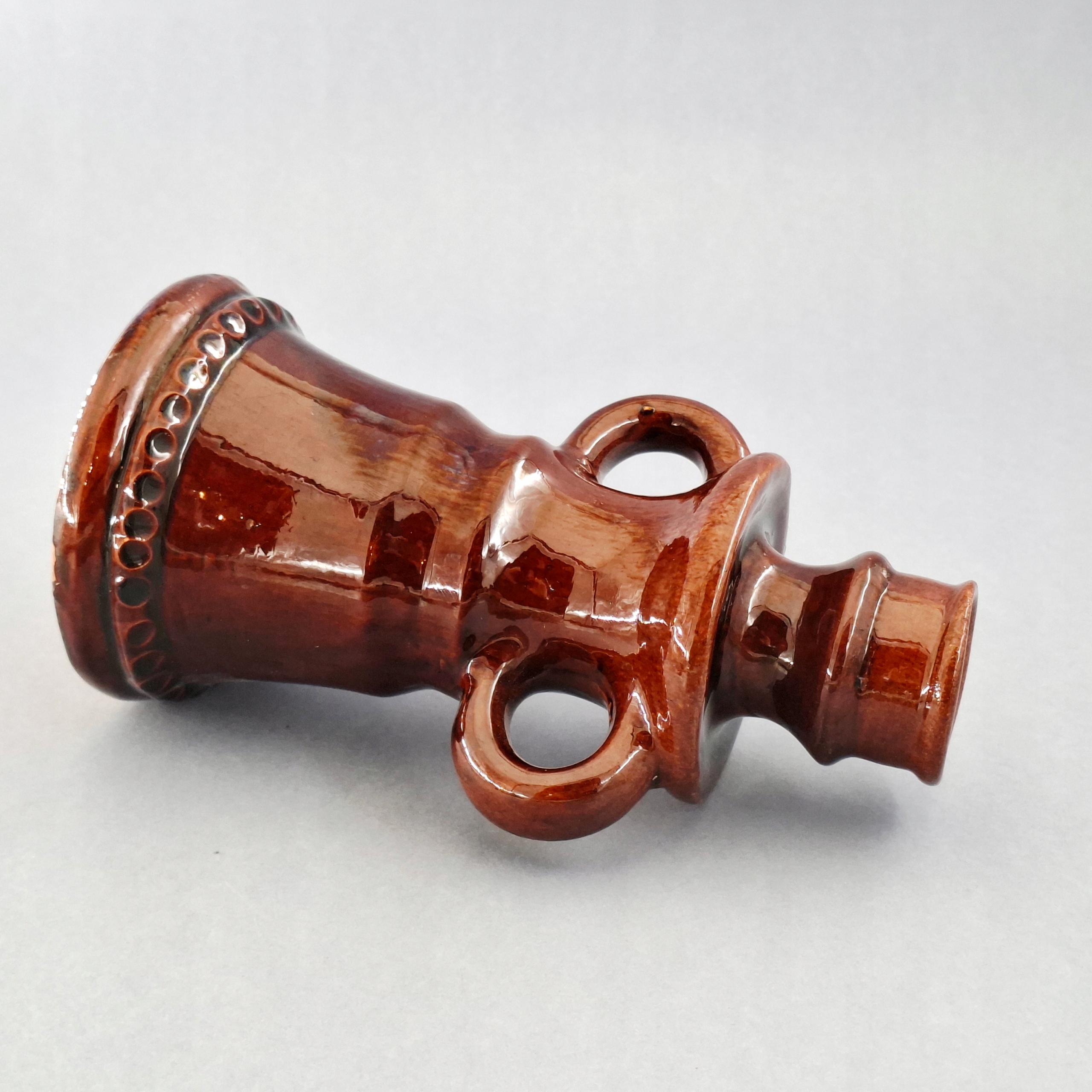 Старий свічник ручної роботи з глазурованої глини.