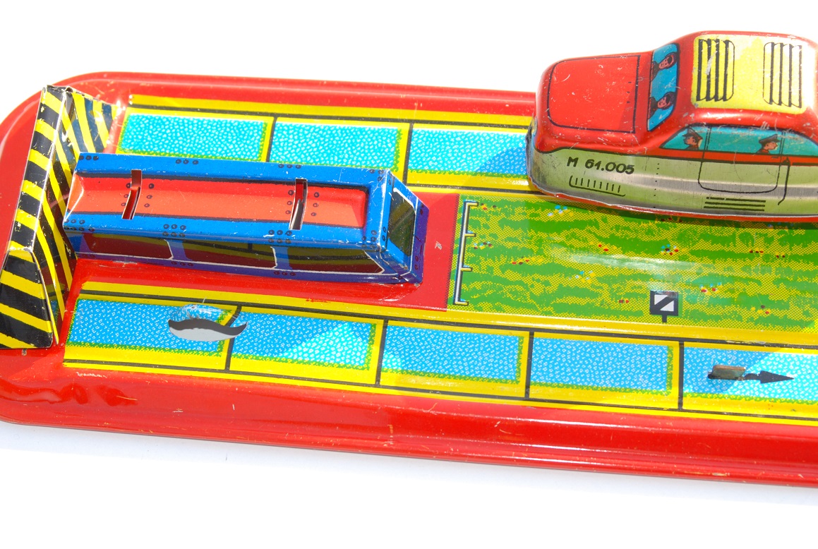 Старий жерстяний іграшковий автомобільний трек, старовинний колекційний предмет