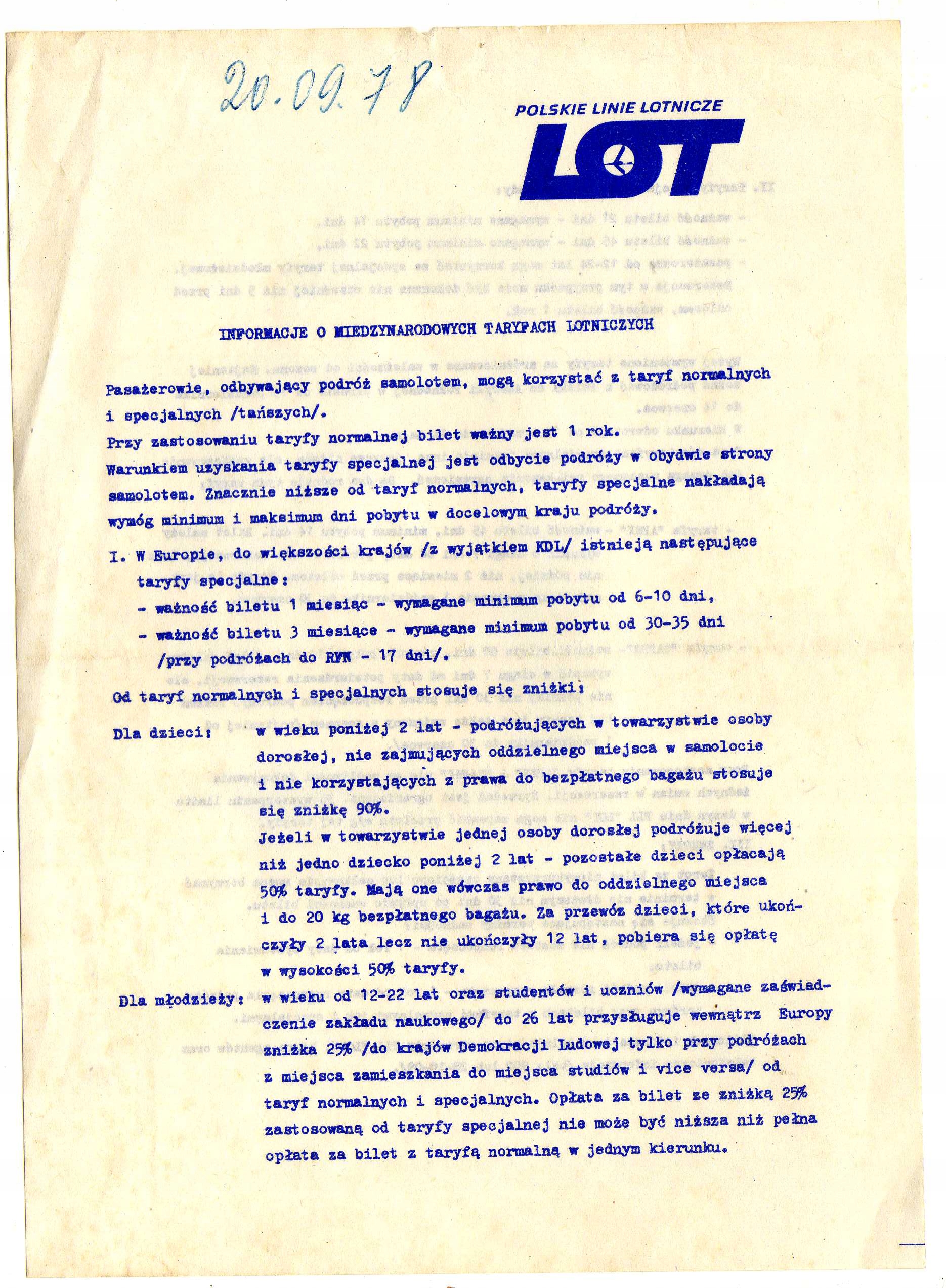 СТАРА ІНФОРМАЦІЯ ПОЛЬСЬКИХ АВІАЛІНІЙ, 1978 р