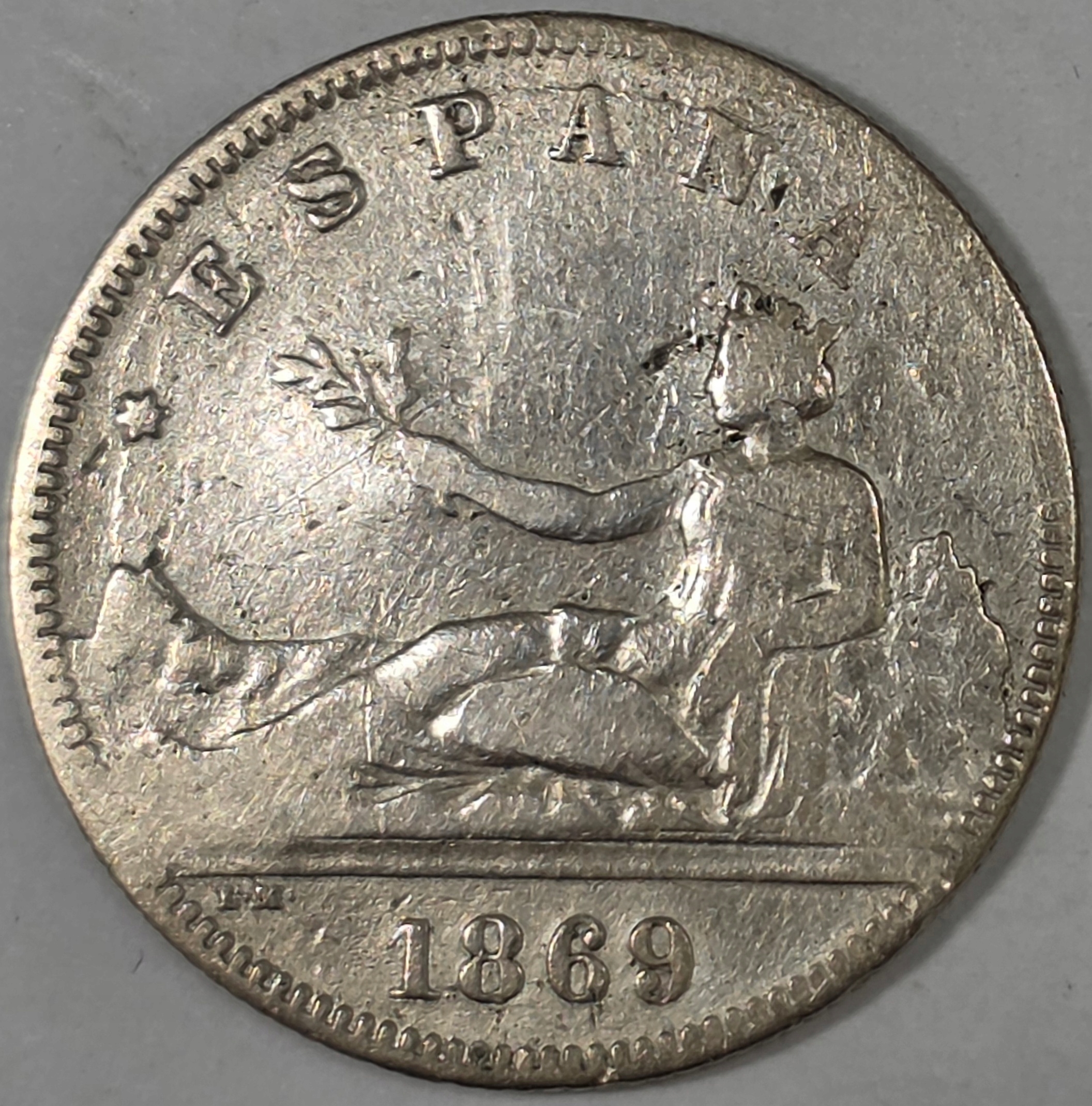 Стара Іспанія, 2 песети 1869 року, срібна монета S172
