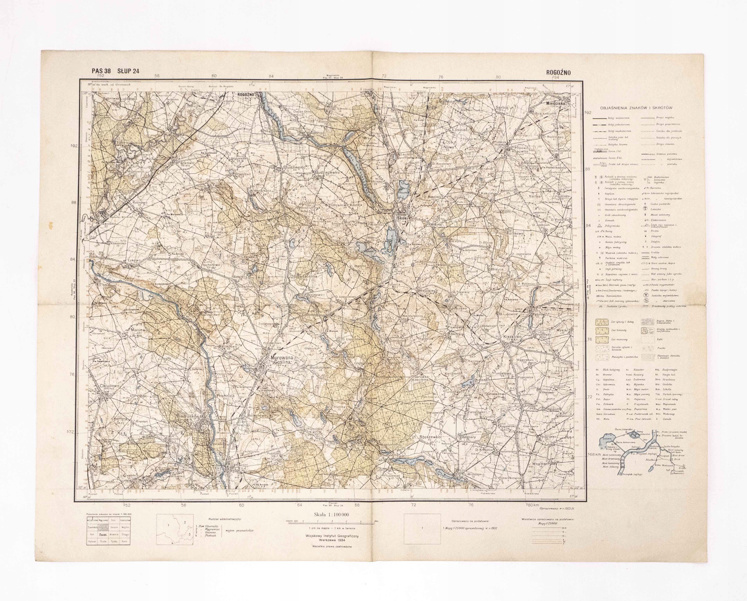 СТАРА КАРТА - ROGOŹNO, SKOKI, MUROWANA GOŚLINA, STĘSZEWKO, MIEŚCISKO 1934