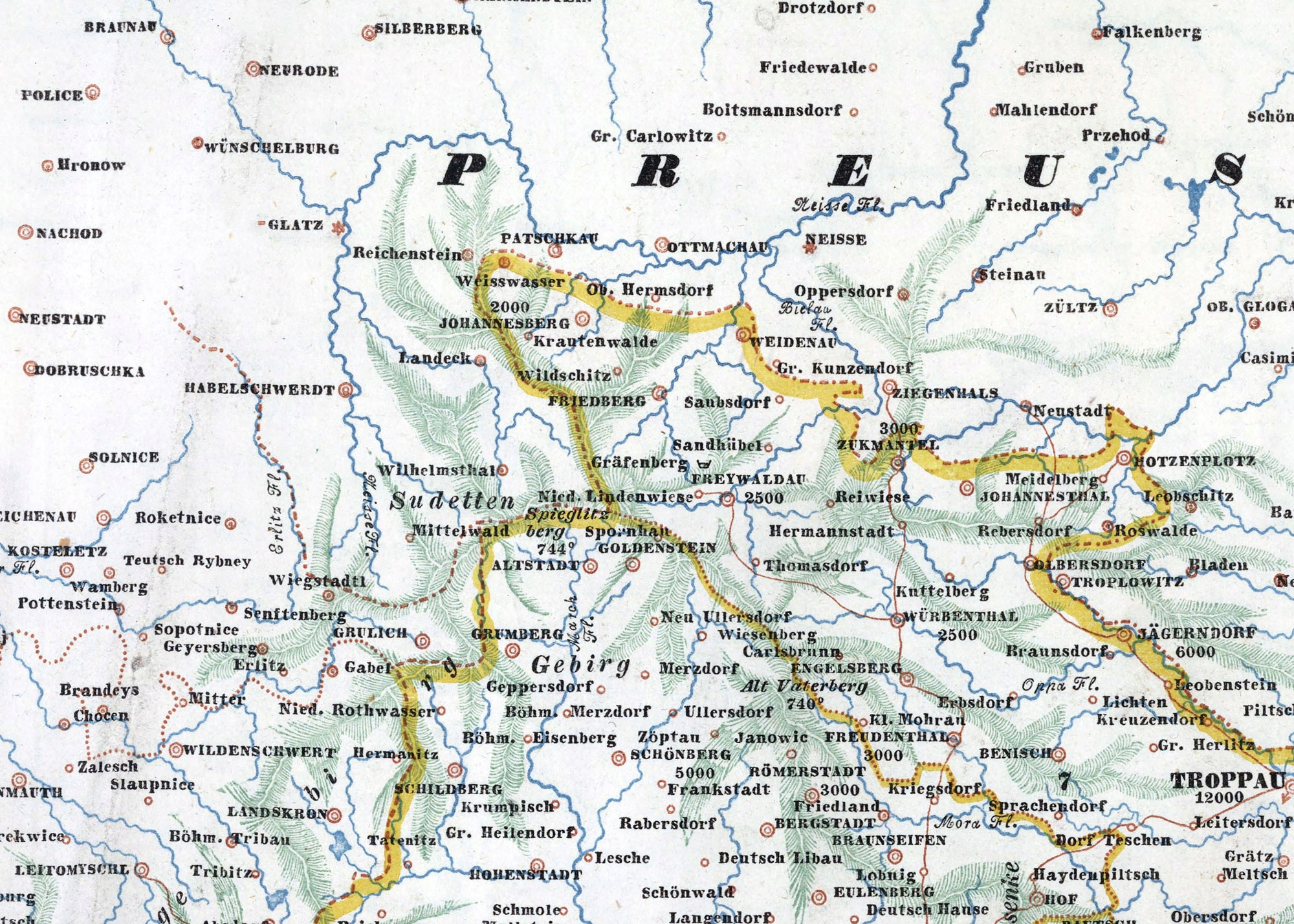 Відтворення моравської та Сілезійської карти - "Karte der Markgrafschaft Mähren Mit Schlesien" від Franz Raffelsperger. Спочатку опубліковано в 1843 р.