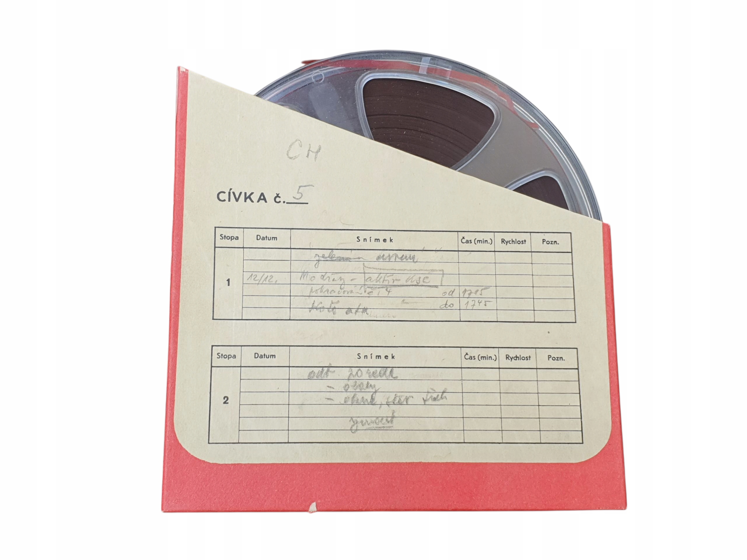 Вміст стрічки невідомий - її неможливо відтворити через відсутність відповідного обладнання. На внутрішній стороні обкладинки є рукописні нотатки чеською мовою, які, можливо, описують записи (музика, промови чи інший аудіоматеріал періоду). Це може бути щось надзвичайно цікаве чи історично цінне, проте я продаю його як «кота в мішку» — вміст не перевірено.