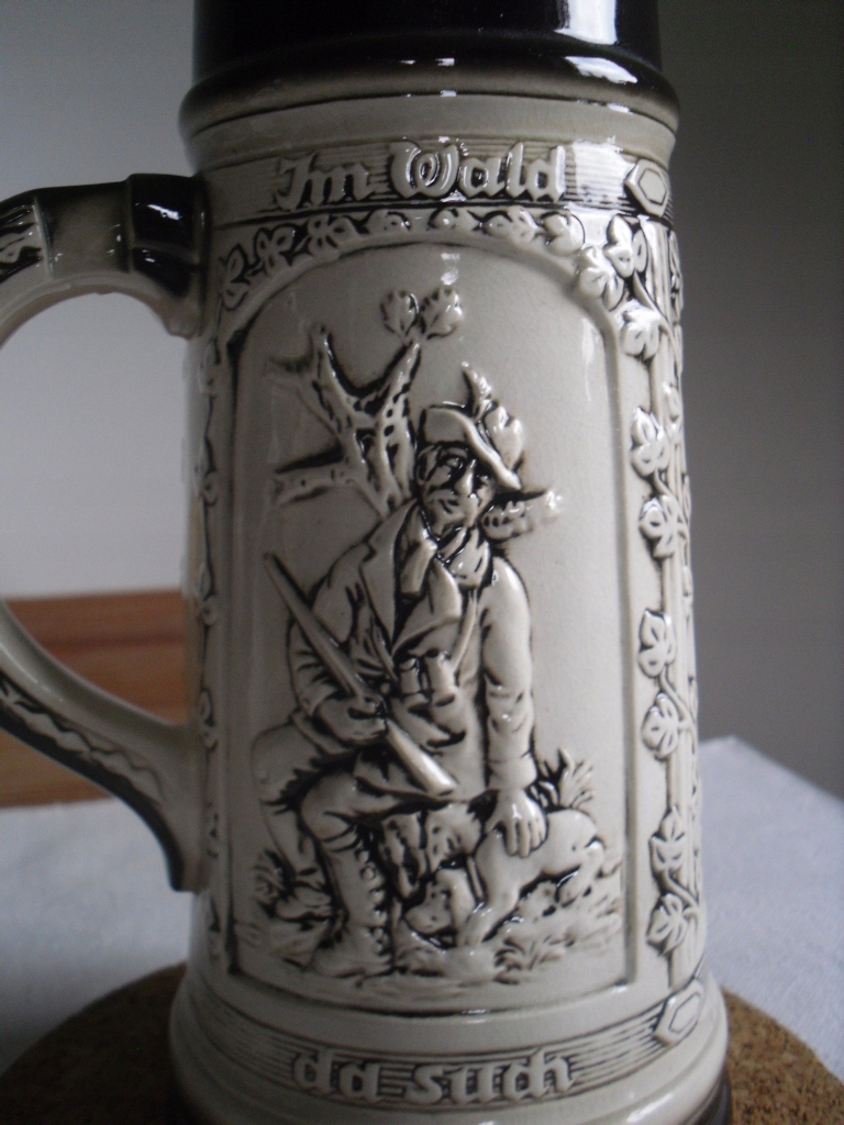 Ласкаво просимо на мій аукціон. На аукціонах я зазвичай пропоную вам речі часів Польської Народної Республіки. На цьому аукціоні я пропоную ОРИГІНАЛЬНУ старовинну керамічну кухоль із зображенням полювання та коміксів. Дуже гарно подана жанрова сценка на кухлі, тиснення під пальцями, щось на зразок 3D. Кружка повна і в дуже хорошому стані. Кружка гарно оформлена, ціла, без пошкоджень, всередині гарно збережена, не потьмяніла / наче не була в користуванні / Гарна прикраса для нашого середовища проживання. Кружка миється і ставиться прямо на полицю. ПІДПИС КОРОНА І І ЗНАКИ. На фото все видно. /див. фотографії/