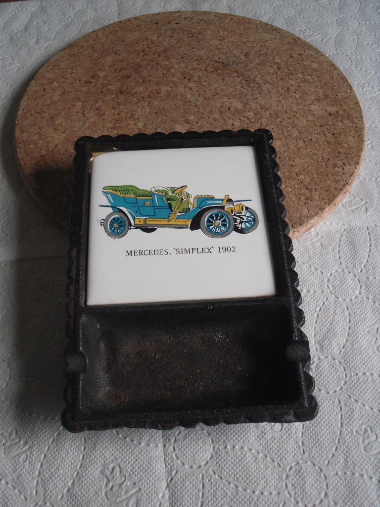 Стара керамічна плитка, чавунний каркас, попільничка, кераміка, плитка MERCEDES