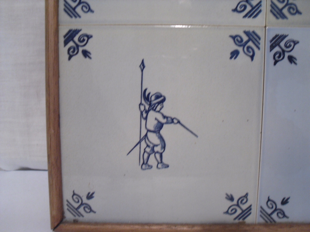 Стара керамічна плитка, плитка в стилі DELFIC, 8 штук, дерев'яна рама, ПІДНОС