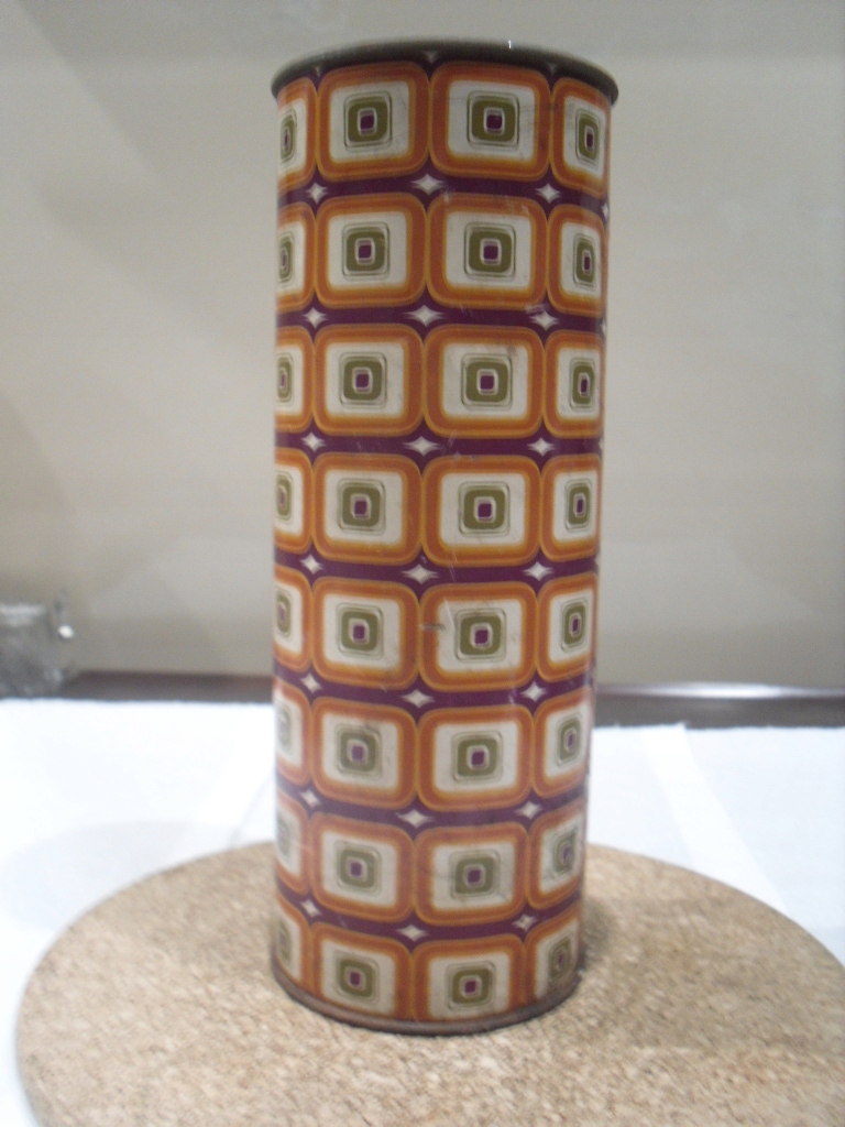 Стара консервна банка, коробка, металевий контейнер, стара різнобарвна банка, цікавий дизайн 1
