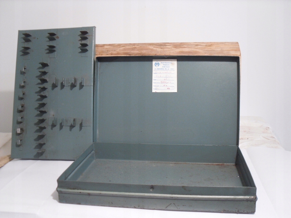Ласкаво просимо на мій аукціон. На аукціонах я зазвичай пропоную вам речі часів Польської Народної Республіки. На даному аукціоні пропоную ОРИГІНАЛЬНУ коробку металеву ємність красивого синього/блакитного кольору середина і низ зеленого кольору хакі. У коробці знаходяться торцеві ключі, виготовлені в 1987 році Кооперативом металістів у Познані. Коробка містить оригінальну та непошкоджену бирку з даними /див. фото/ Коробка також містить металеву вставку з тримачами для ключів та оригінальну картонну коробку, яка служить роздільником. Коробка всередині як нова (навіть є специфічний запах тих років), а зовні подряпана та потерта (на фото). Коробка ціла, НЕ погнута. Тепер ви можете використовувати коробку як контейнер для зберігання всього, що забажаєте. Коробка ціла, очищена, але я її нічим не захищала на випадок, якщо хтось захоче її пофарбувати (за бажанням можу захистити). Найкраще подивіться фото.