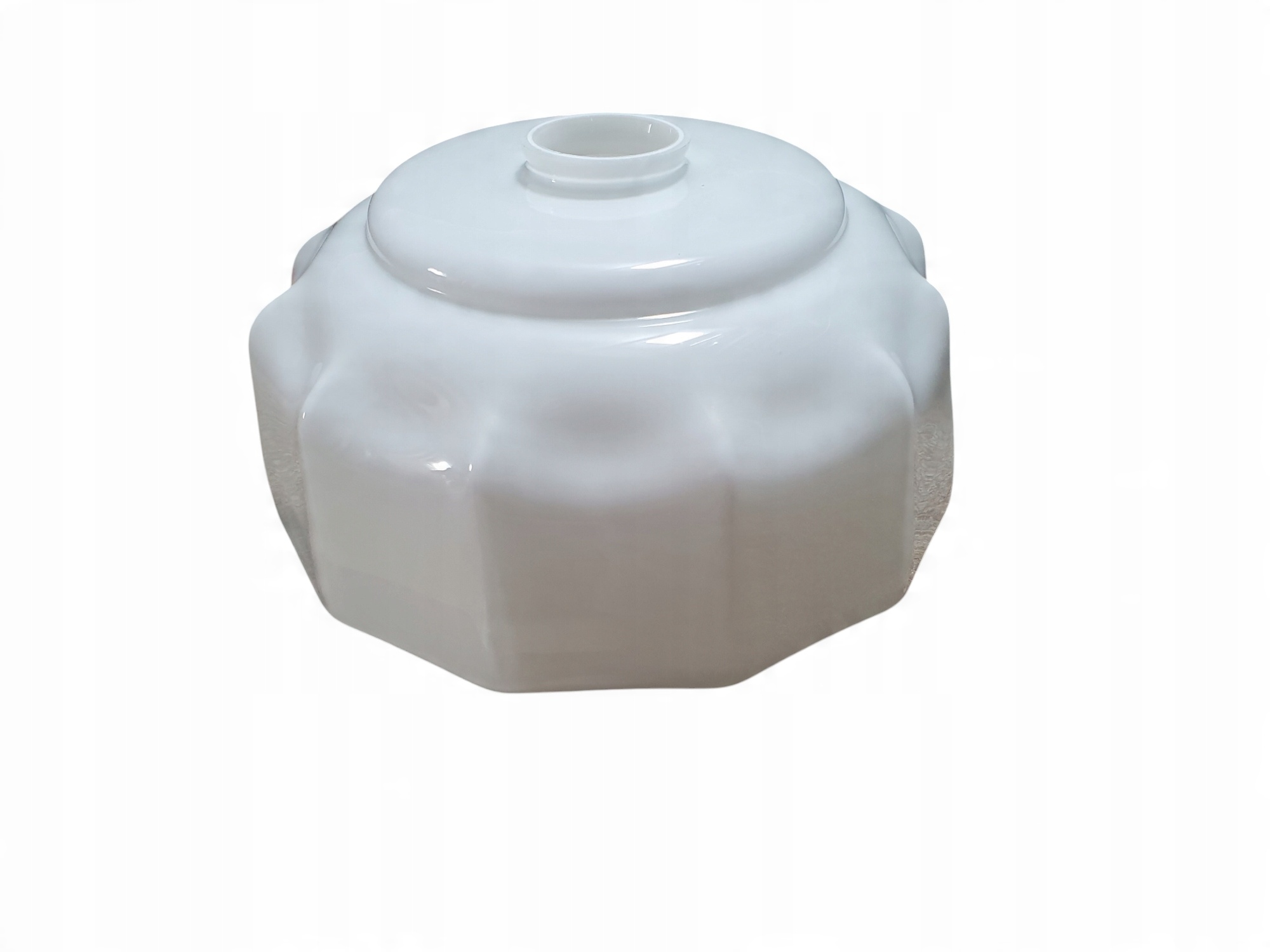 Старі великі скляні світильники для білої світильника, 12-ти, оригінальна з 60-х та Antyk Antyk Monum. Рідкість колекціонера, Prl. Цей відтінок, виготовлений з твердого, білого склянки з молоком, вражає його елегантним, позачасовим зовнішнім виглядом. Характерна, дванадцять забарвлена форма з злегка округлими краями робить його ідеально вмістити як у ретро, старовинний, так і класичний або еклектичний інтер’єр. (Opalinowe)