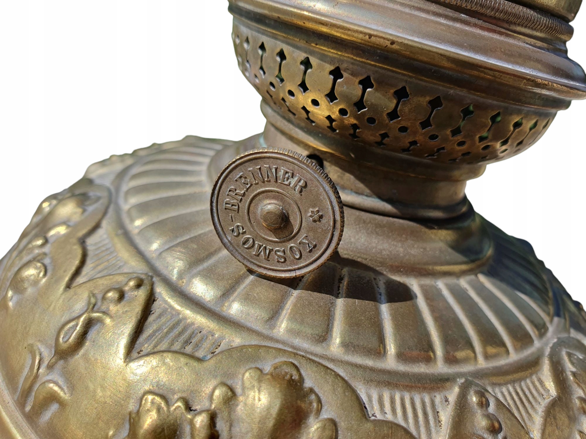 Предметом продажу є унікальна колекційна довоєнна гасова лампа, виготовлена з високоякісна латунь, підпис Brenner Kosmos - відомий бренд, відомий виробництвом ламп чудової якості та унікального дизайну.