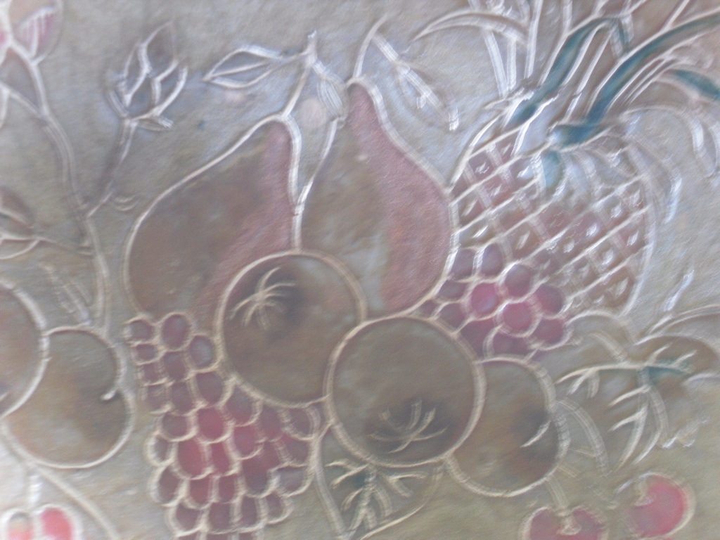 Ласкаво просимо на мій аукціон. На аукціонах я зазвичай пропоную предмети з PRL. Цього разу у мене продається оригінальний старий фруктовий п. Патера із зовнішньої ребристої, хвилястої краю та красиво оформлена всередині, рельєф із зображенням різних фруктів, фруктів, додатково оточених опуклою золотою лінією. Весь всередині, ймовірно, покрита деяким лаку або чимось подібним, у двох місцях це покриття пошкоджено. Красивий декоративний предмет. Для збору для використання. Дивіться фотографії.