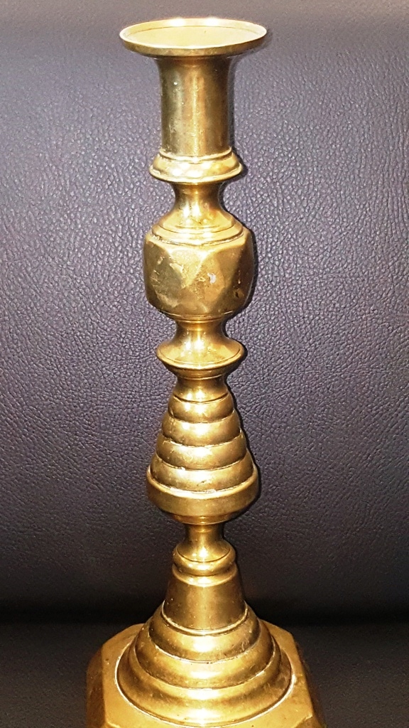 СТАРА ЛАТУННА ПІДСТАВКА СВІЧНИКА - ПІДПИС