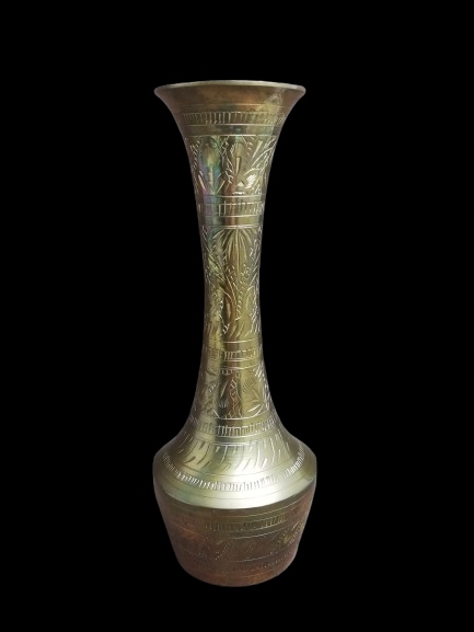 Стара латунна ваза, індійська латунна ваза з гравіюванням