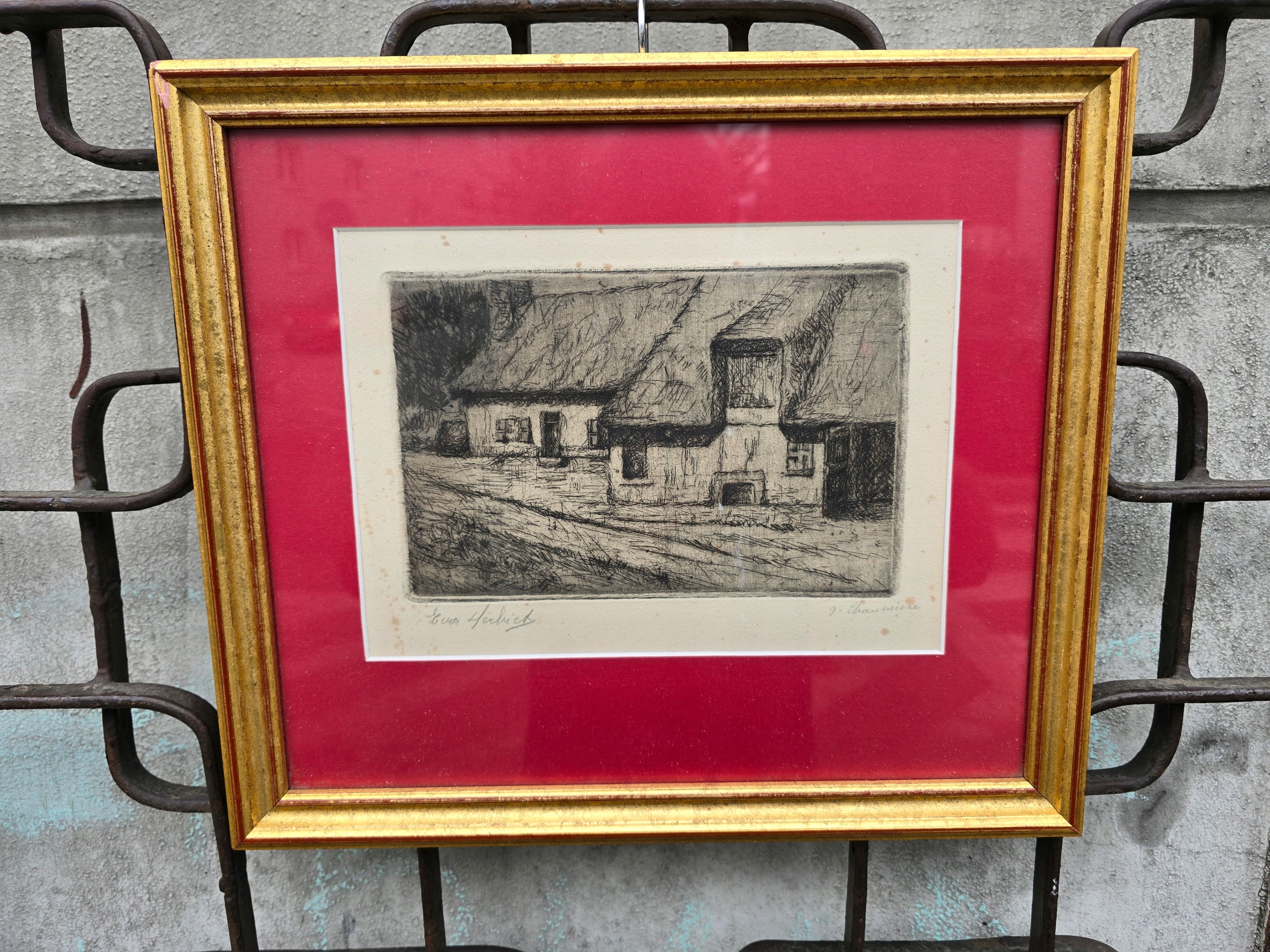 Стара ліногравюра із зображенням котеджу Єви Гербіє
